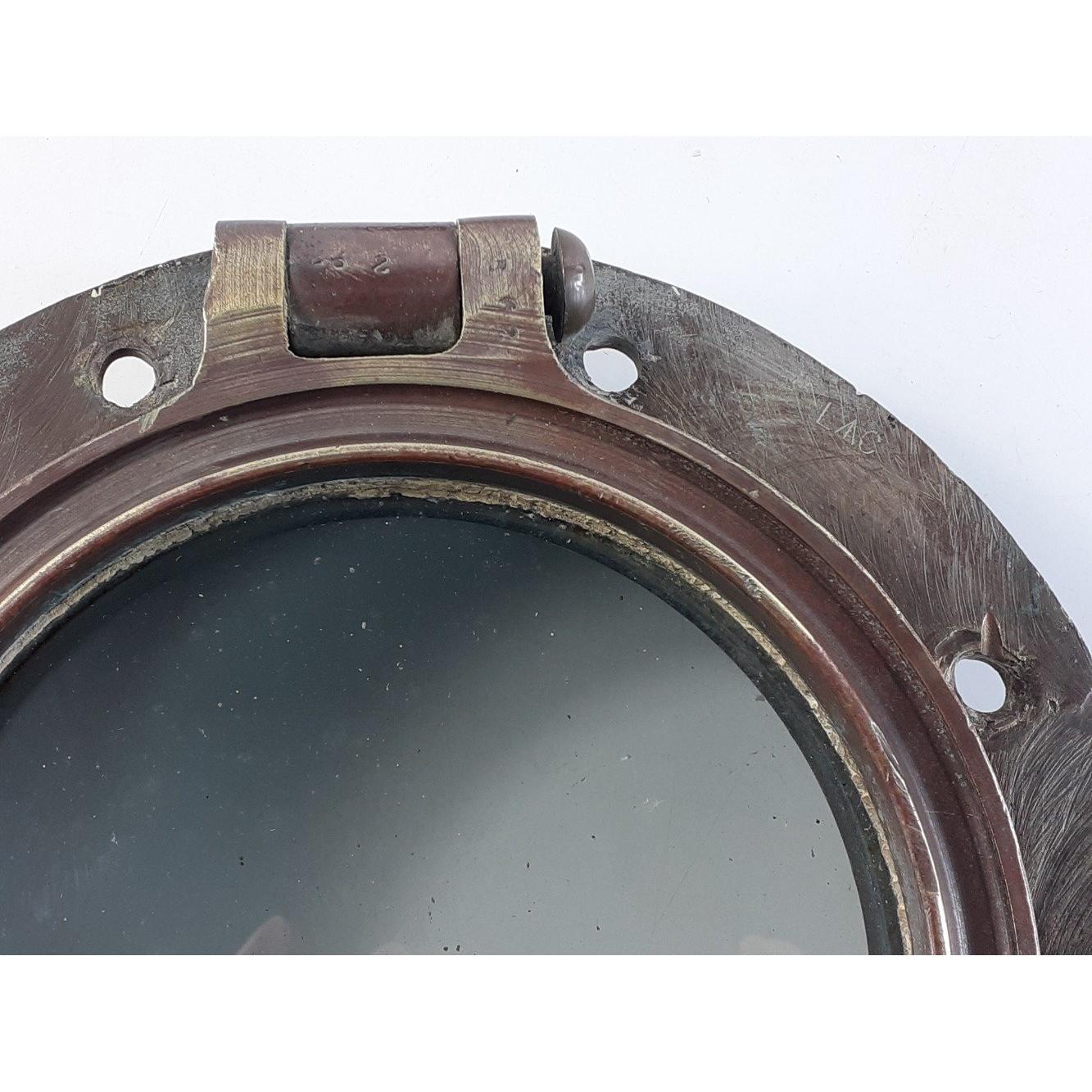 AHOY THERE! An original solid brass porthole in good original unpolished condition. Glass in lovely clean condition. Measures 18cm. Fantastic decorative piece. One of two listed from the same source.