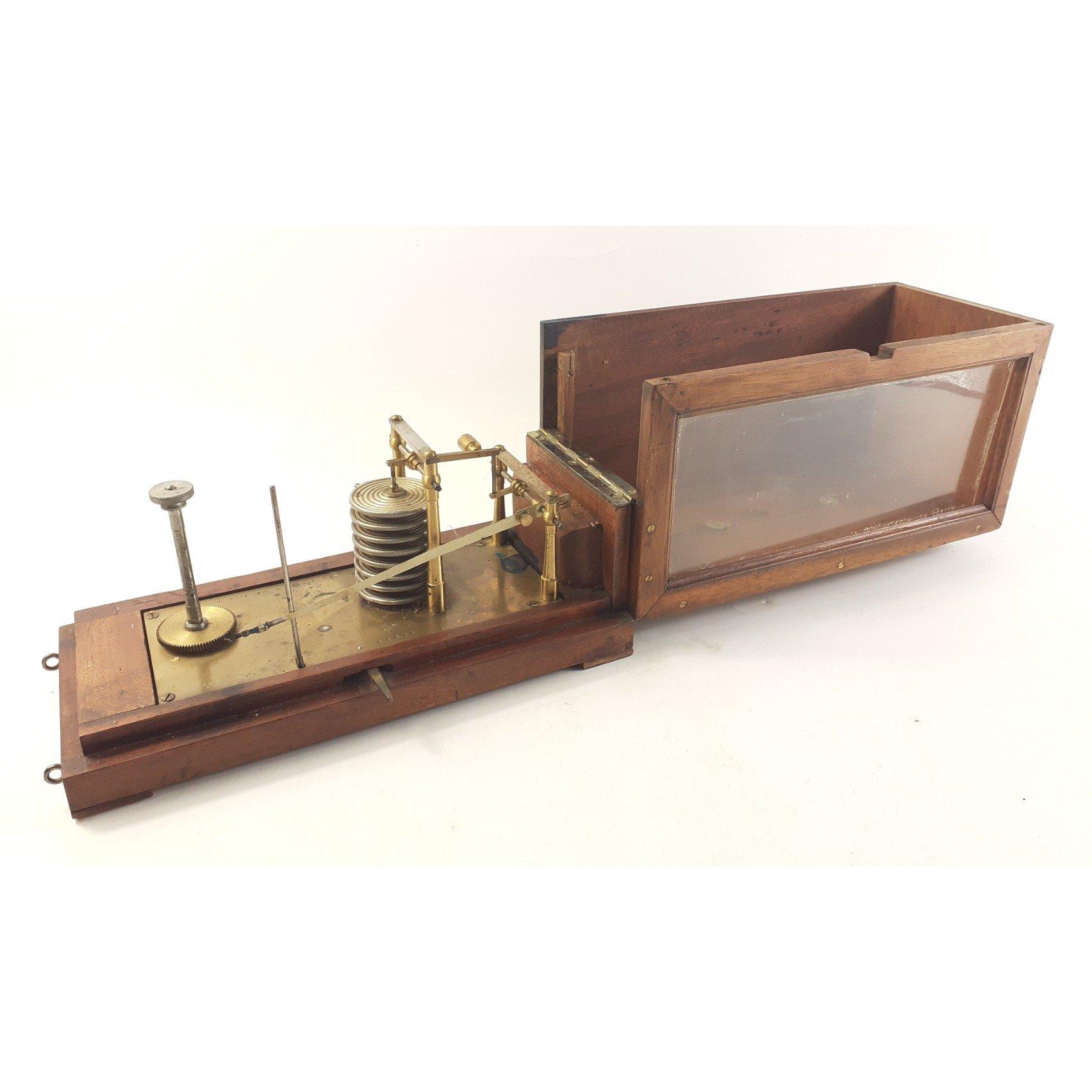 An antique RICHARD FRERES of France wood and brass recording barometer / barograph, no 81628Approx 1 pieces