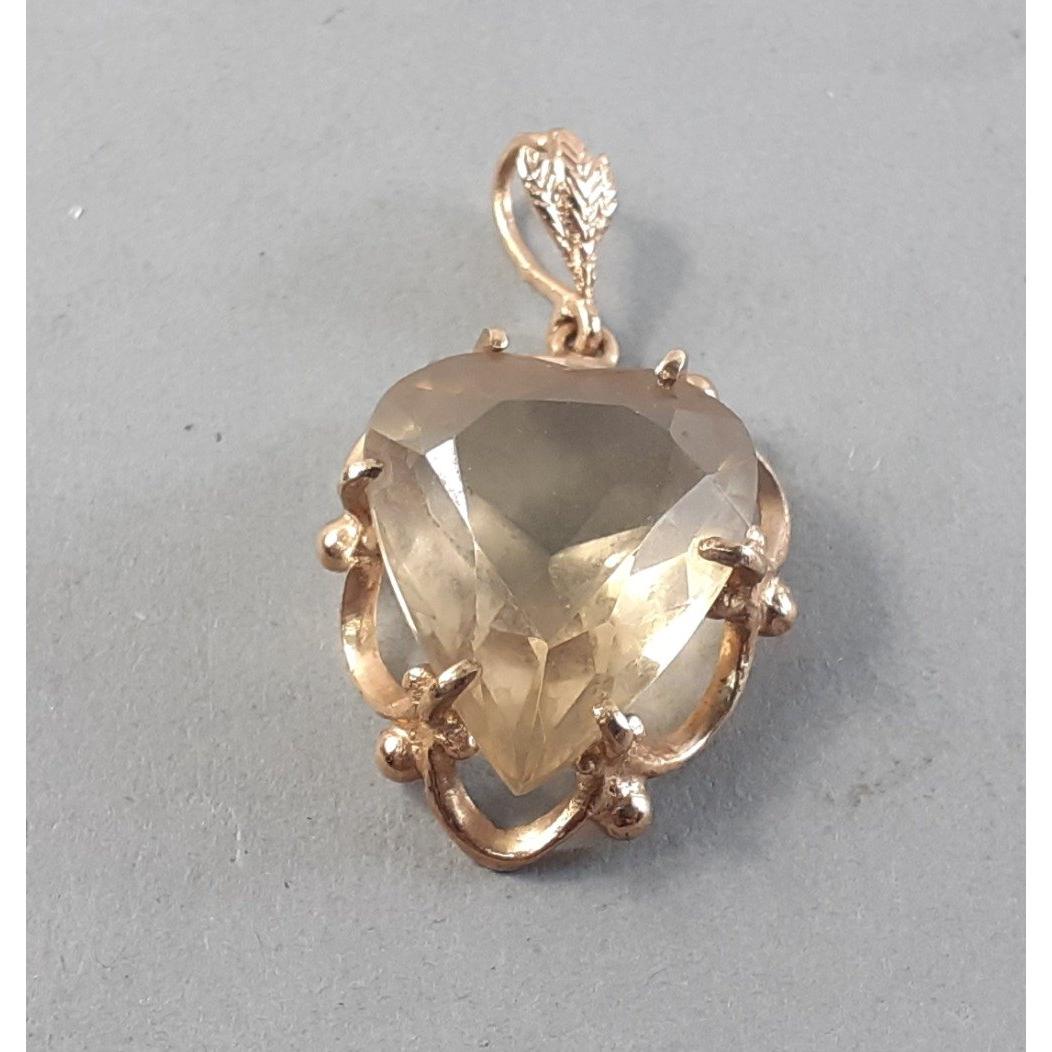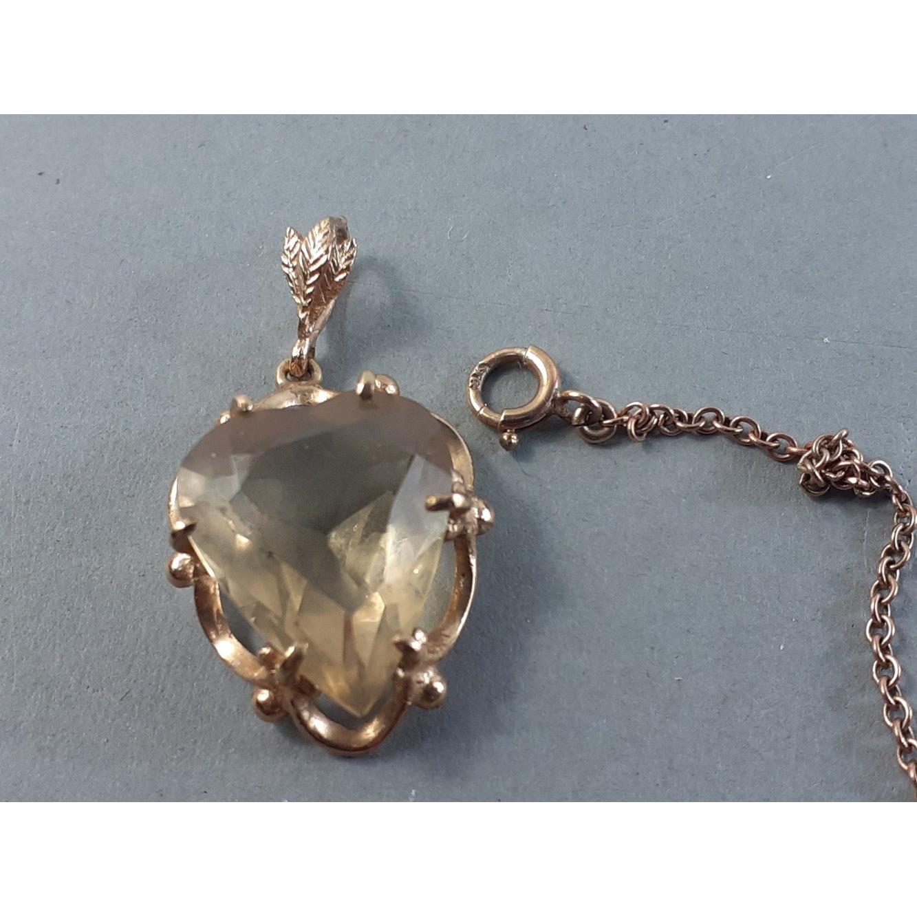 9c stamped neck chain weight 2.32g approx with an unmarked yellow metal pendant with a heart-shaped citrine style stone