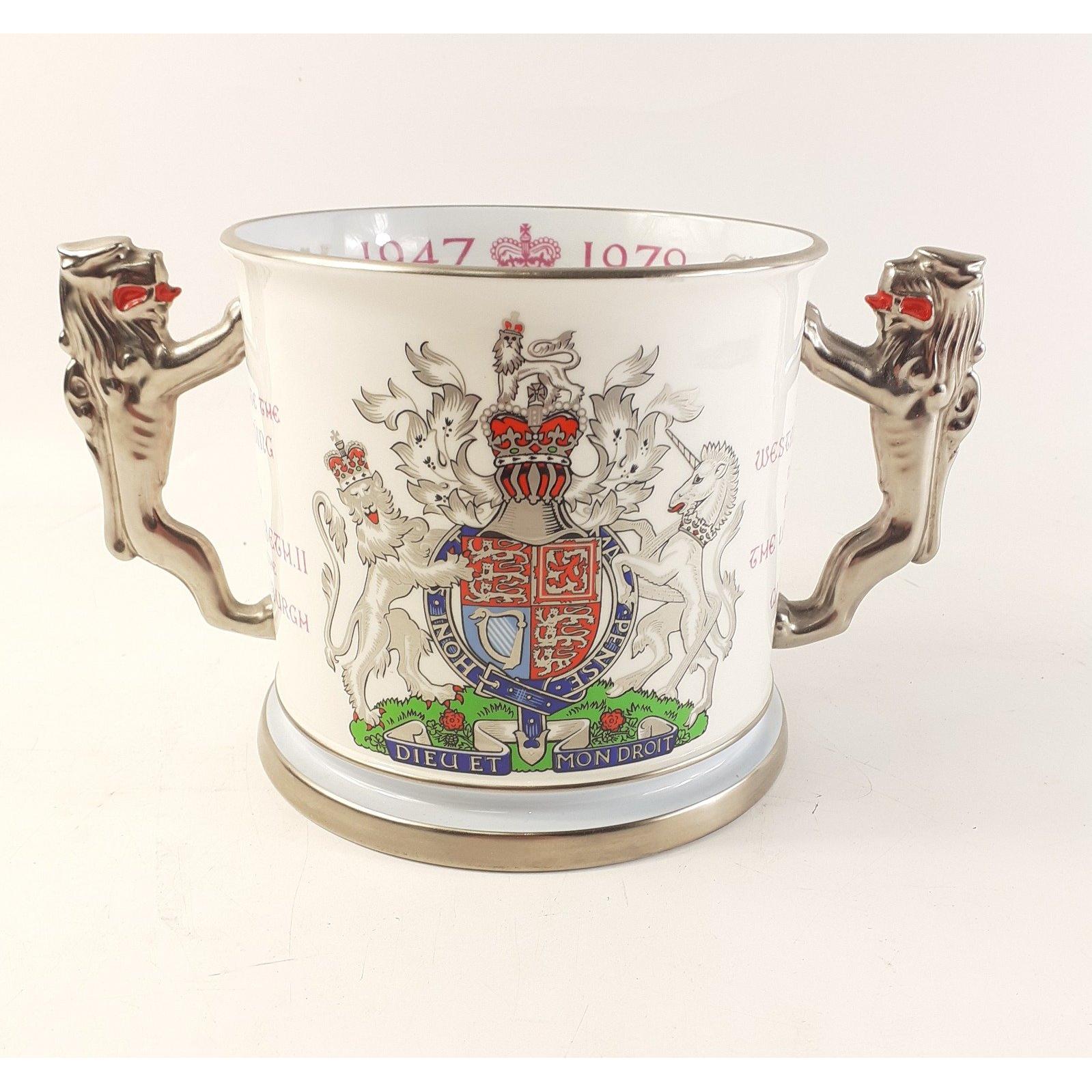 1972 Paragon Silver Jubilee Loving Cup Queen Elizabeth II Wedding Anniversary in excellent condition. Larger size standing 13cm tall.