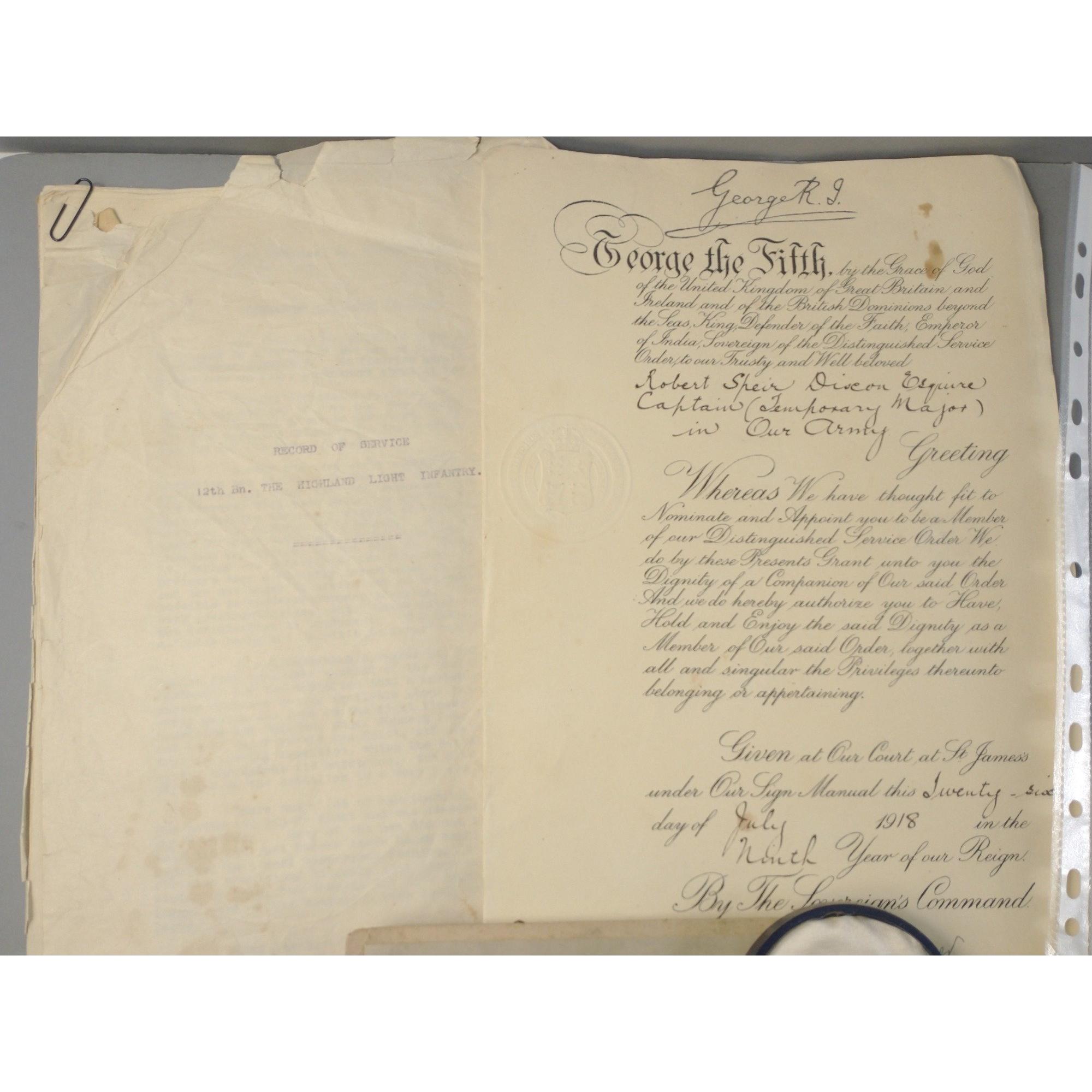 - Appointment to Order of the Distinguished Service Order dated 26 July 1918, Pen signed George R J.