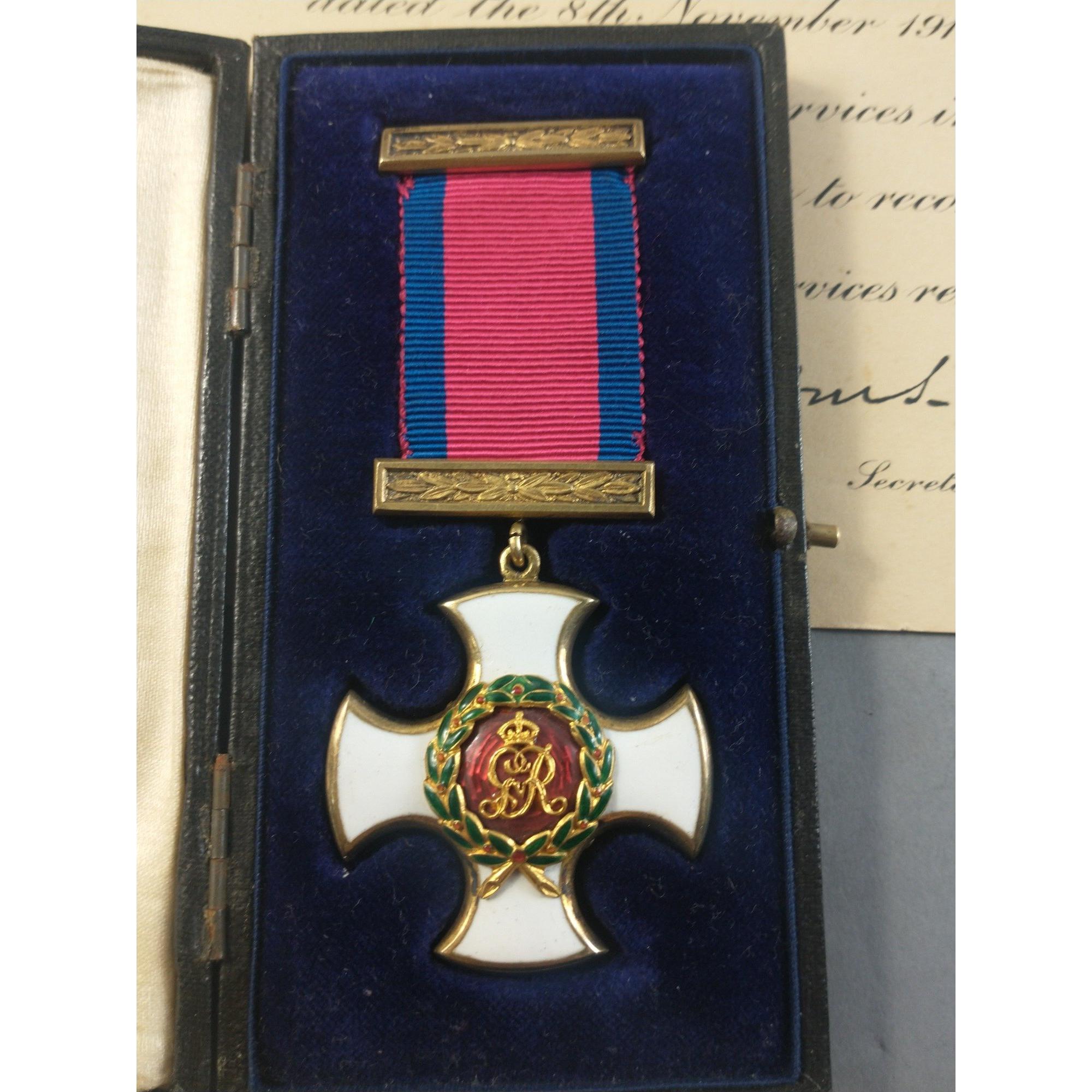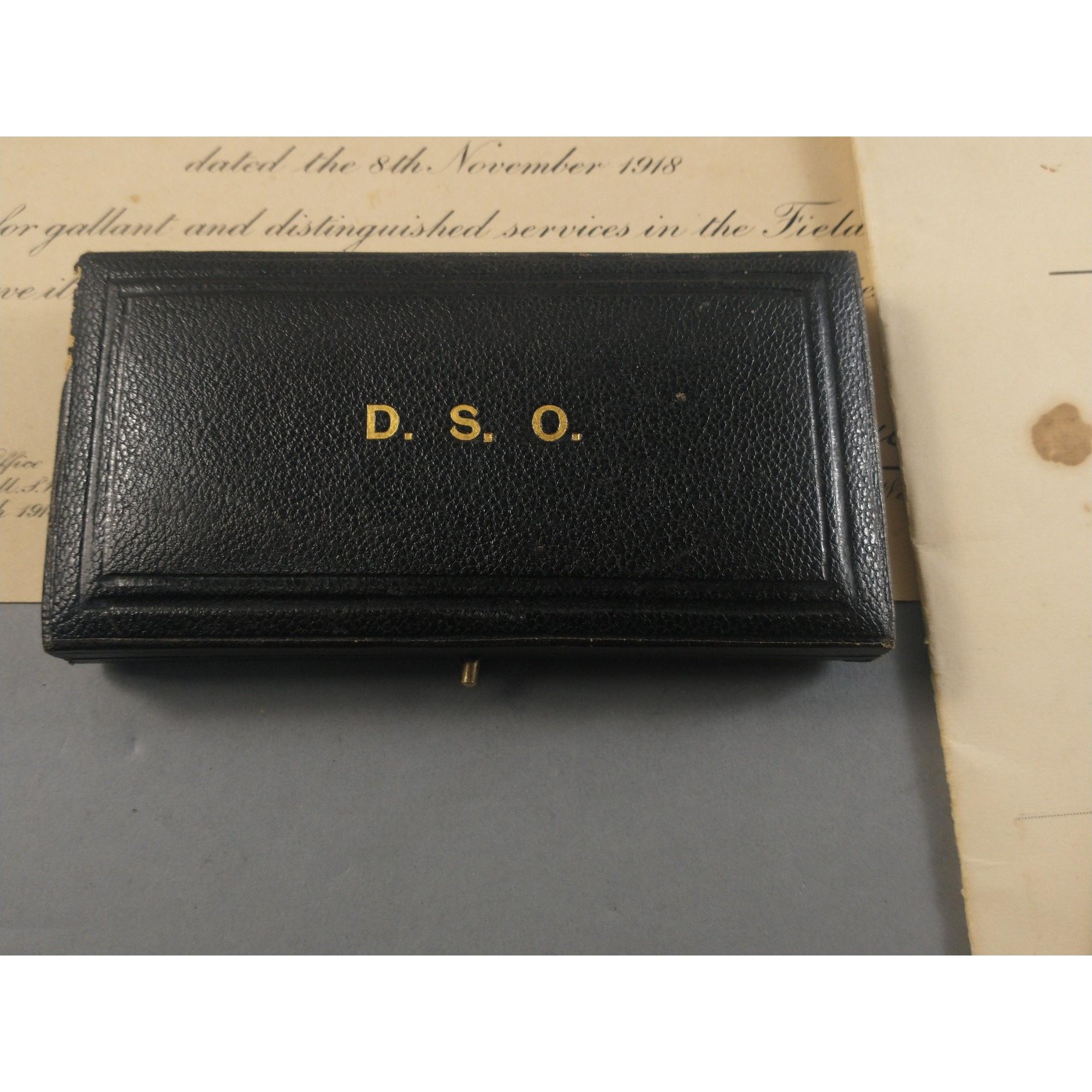 - Cased Distinguished Service Order (DSO) medal with original War Office slip.