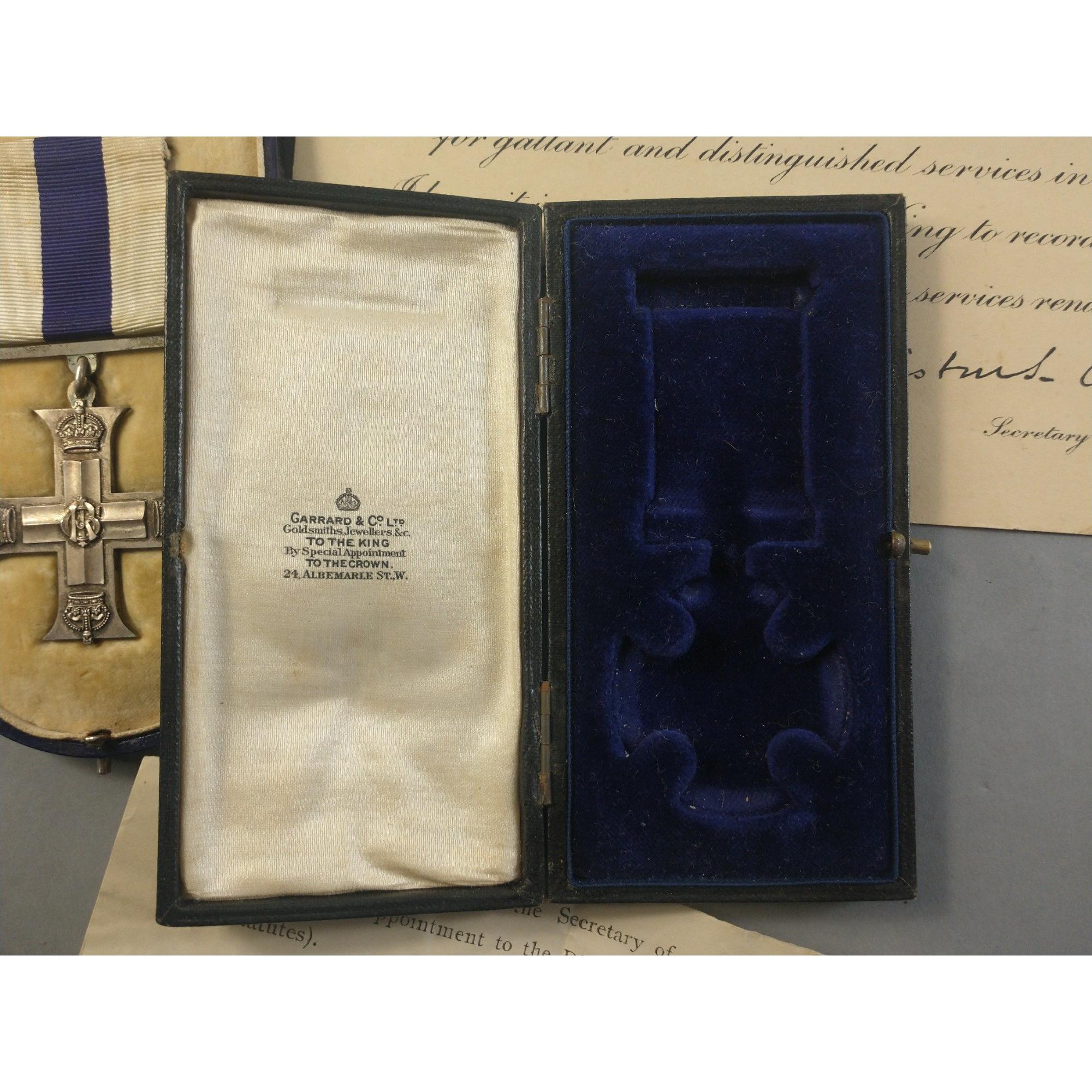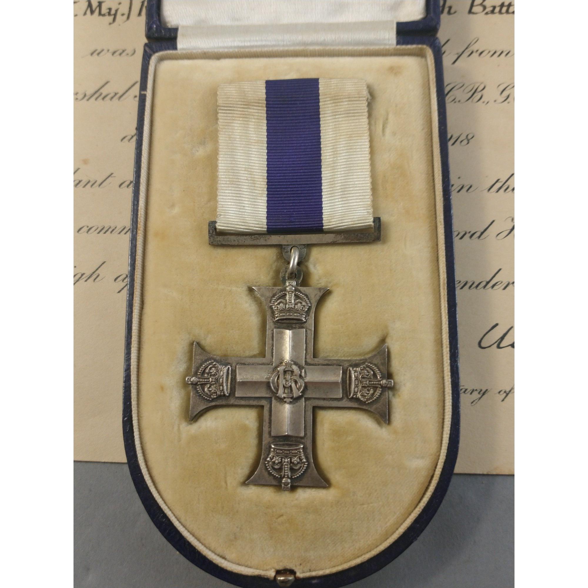 "For conspicuous gallantry and devotion to duty. He conducted a daring reconnaissance clearing up a difficult situation, and afterwards was of great assistance in organising and rallying men of other divisions during the battle. When his commanding officer fell he took command and drove the enemy out of the area. Later, he led his men with great determination and courage against vastly superior numbers, thereby materially assisting the retirement of the whole division". His grand-nephew told the vendor that he went from one flank to the other and back - TWICE through withering fire to get the men whose officers had all been killed, up and fighting again - sprints across the battlefield that left many jaws on the floor.