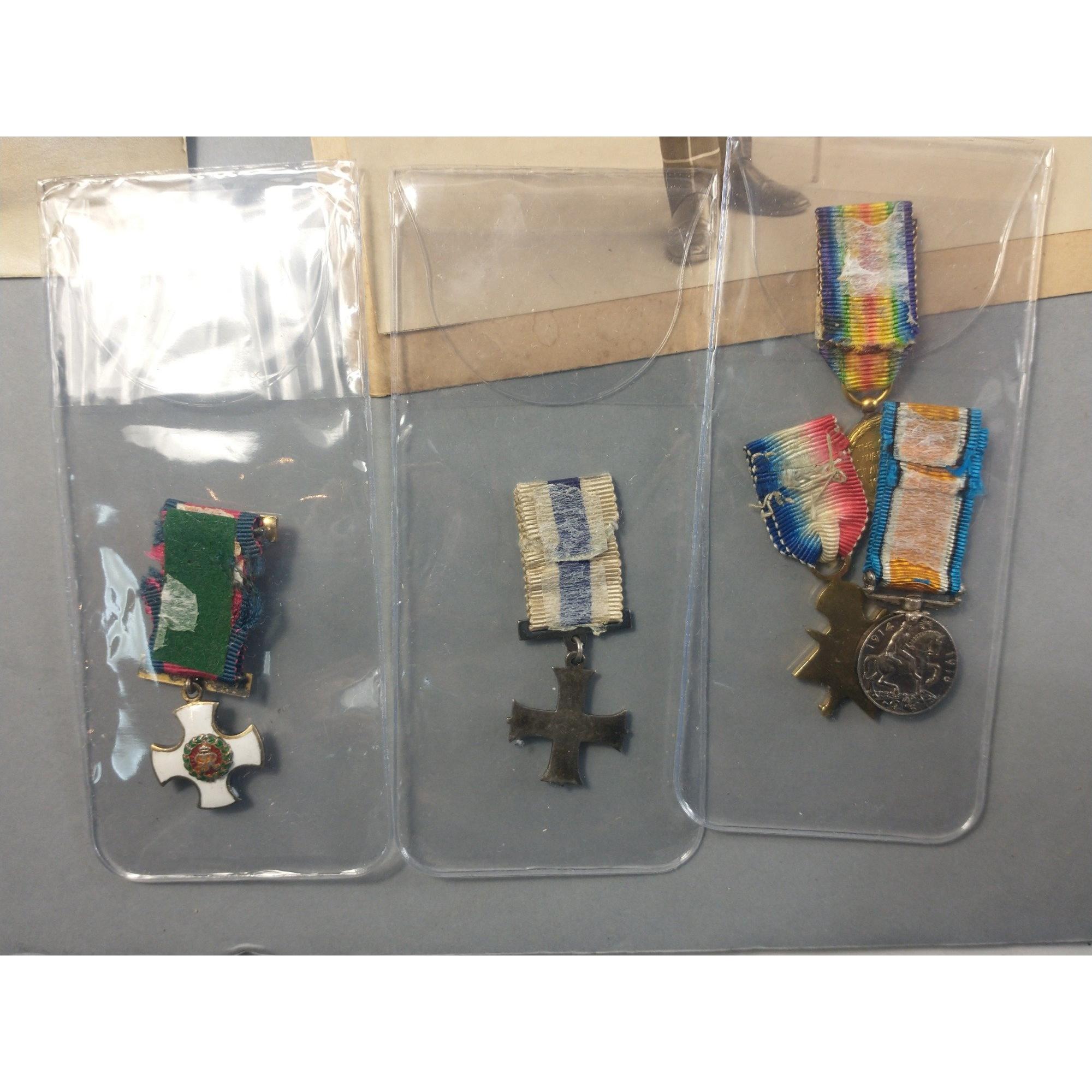 - His full set of Miniature medals including DSO, MC, WW1 1914/15 Star, War Medal and Victory Medal with Mention in Despatches Oak Leaf. These have been worn and were previously court mounted and retain some of the mounting material and glue on the reverse. The miniatures were obtained directly from his family after the DSO, MC & photos etc. were bought in auction years ago by the vendor. Unfortunately, no amount of searching by his family could turn up his 3 standard full size WW1 medals.