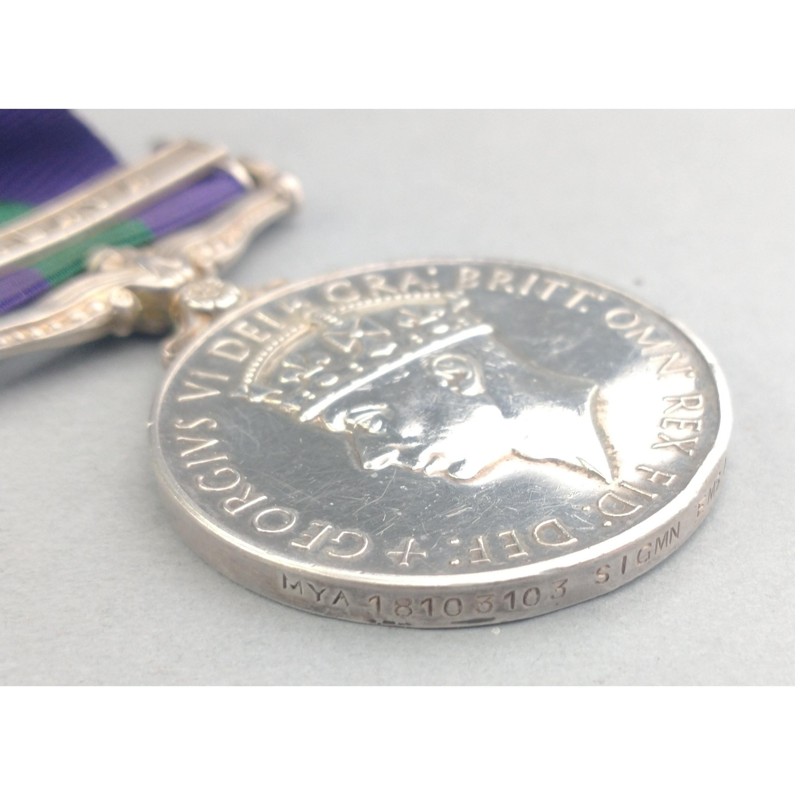 GEORGE VI GSM General Service Medal with Malaya clasp awarded to Mya. 18103103 Sigmn. Embi B Untong ROYAL SIGNALSApprox 1 pieces