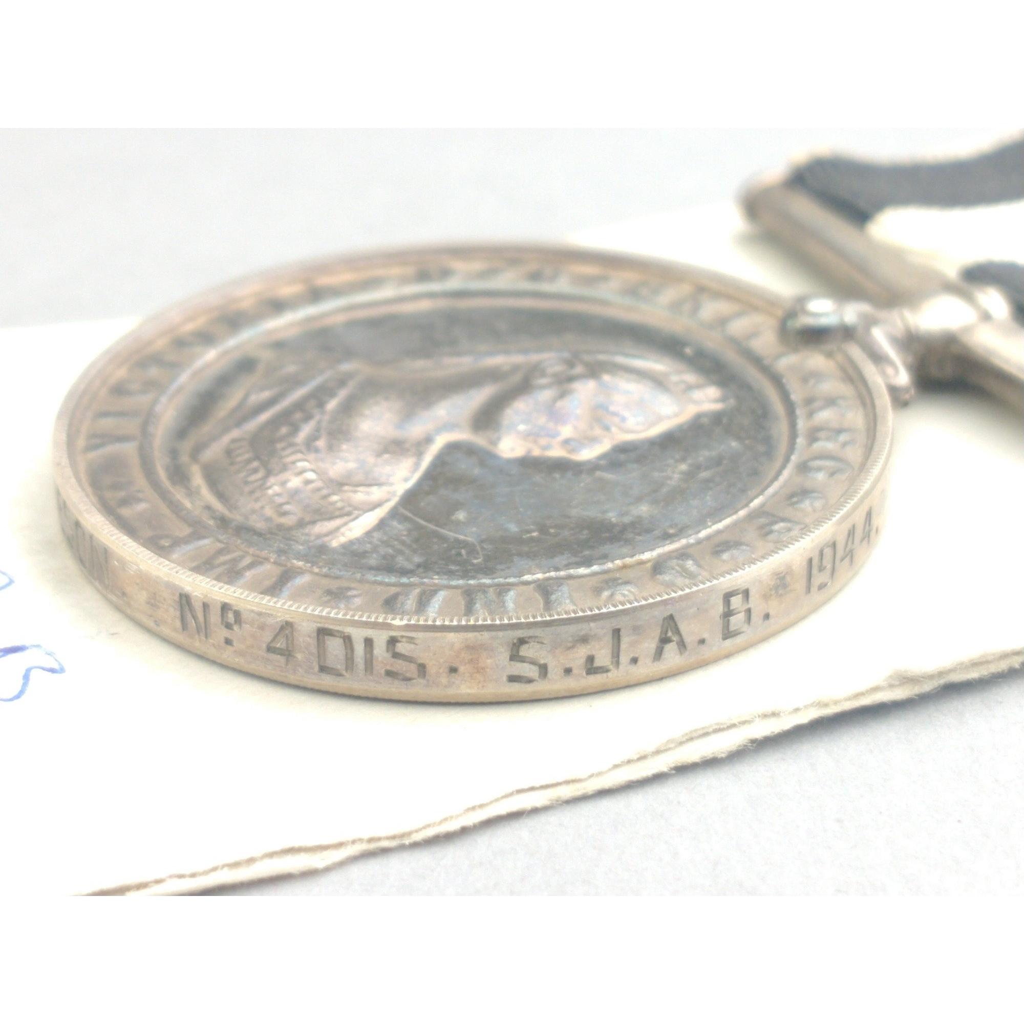 WWII era St. John's Ambulance Service Medal awarded to 29013 D/Sgn. J. A. Jamieson No 4015 SJAB. 1944Approx 1 pieces