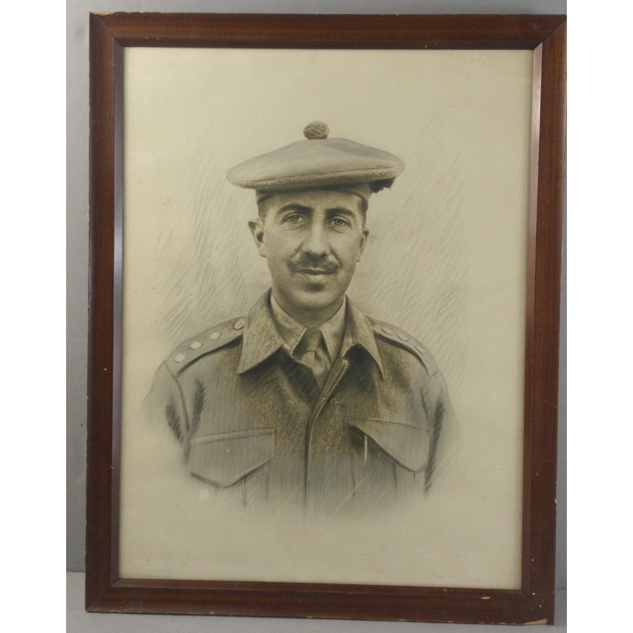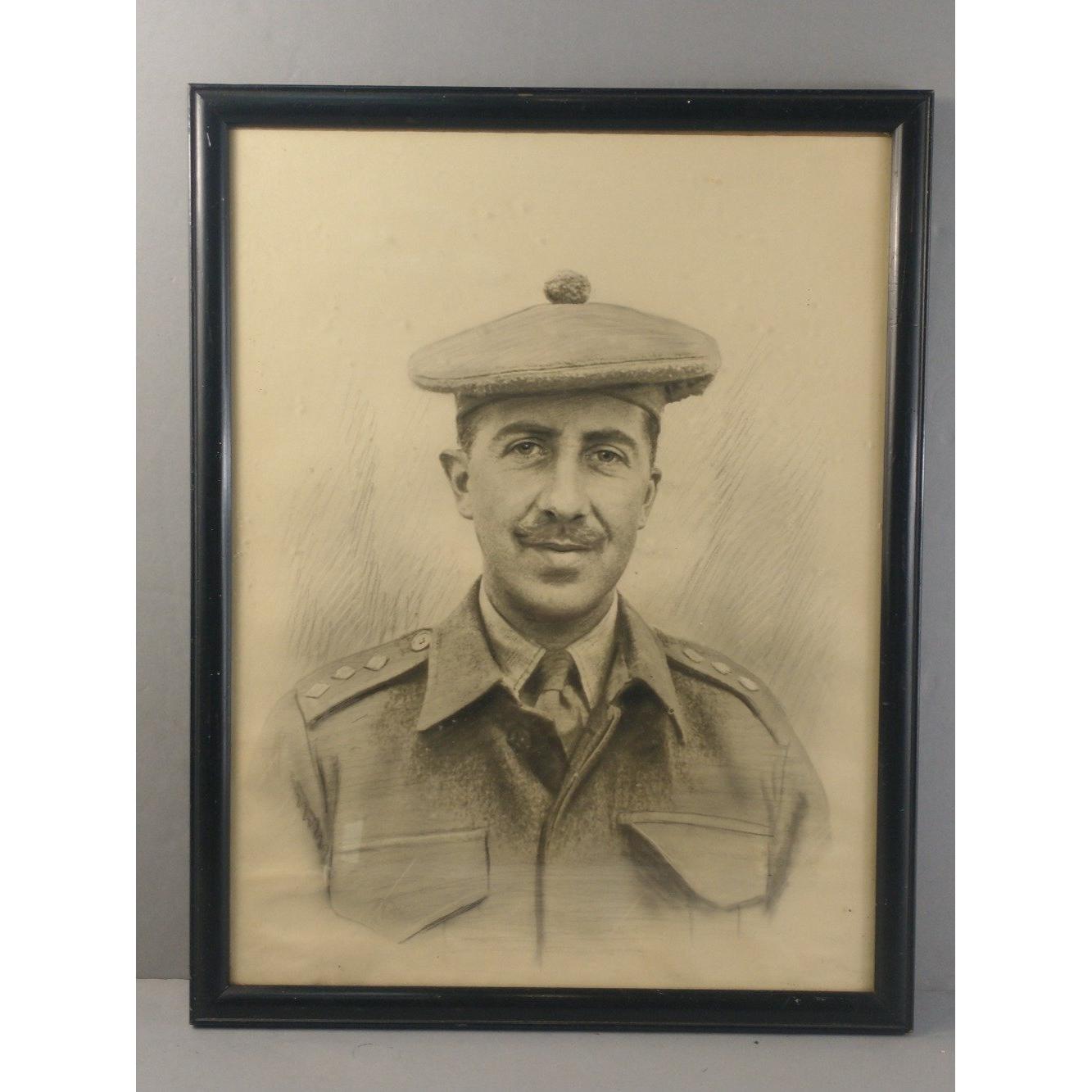 Three pencil sketches of Scottish military men - two of the same man. Frame sizes 47 x 37cm approxApprox 3 pieces