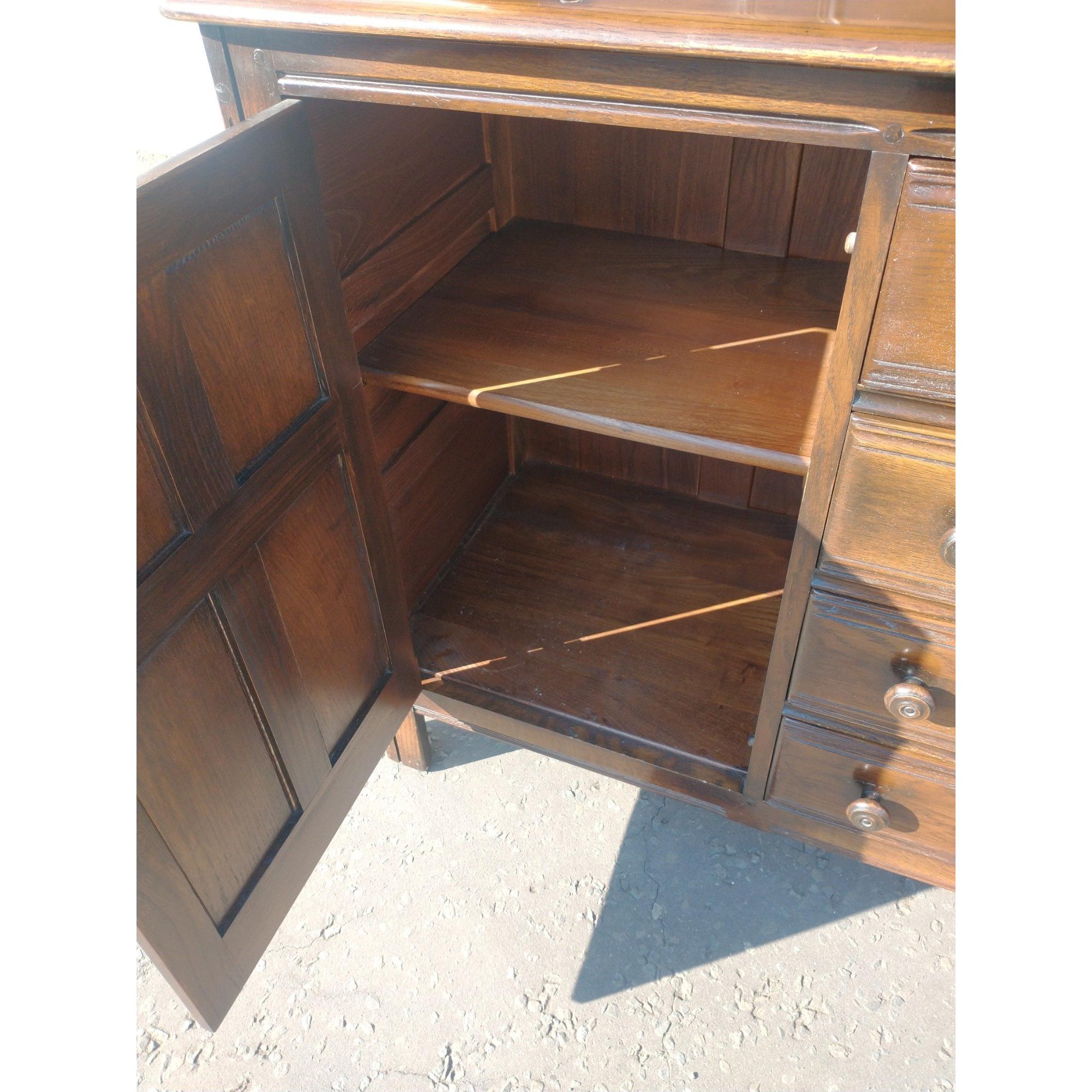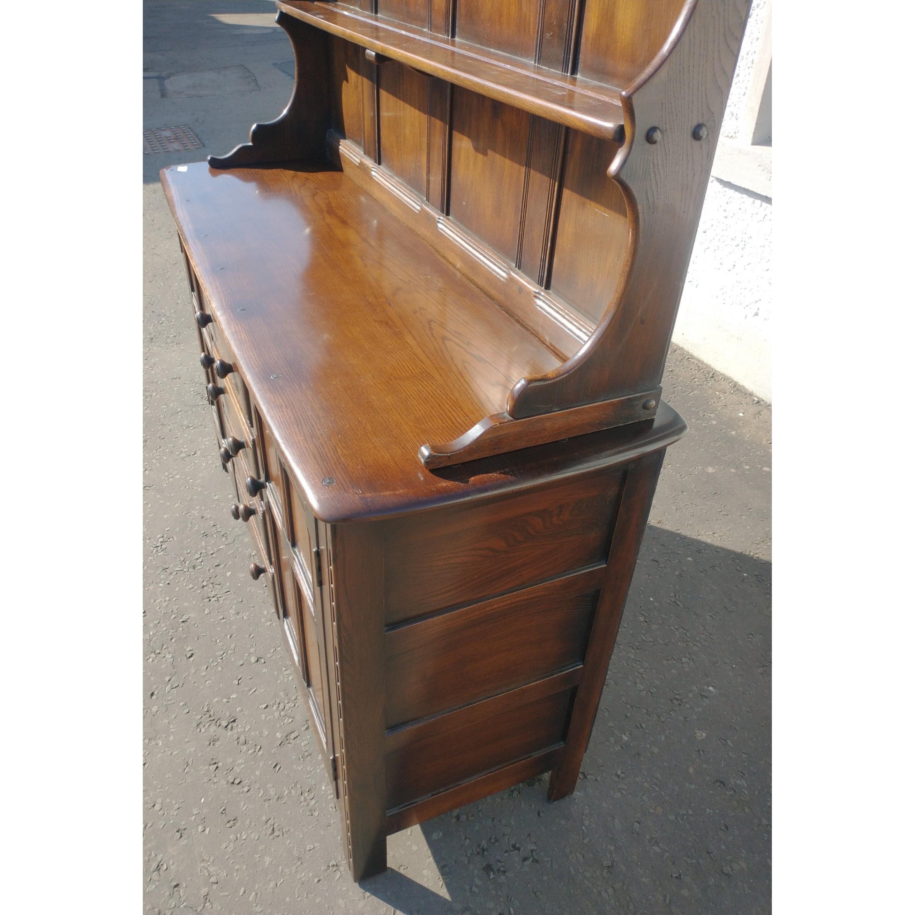 An ERCOL Welsh dresser with 2 cupboards and 4 drawers. Measures W148 x D 51 x H183cm approxApprox 1 pieces