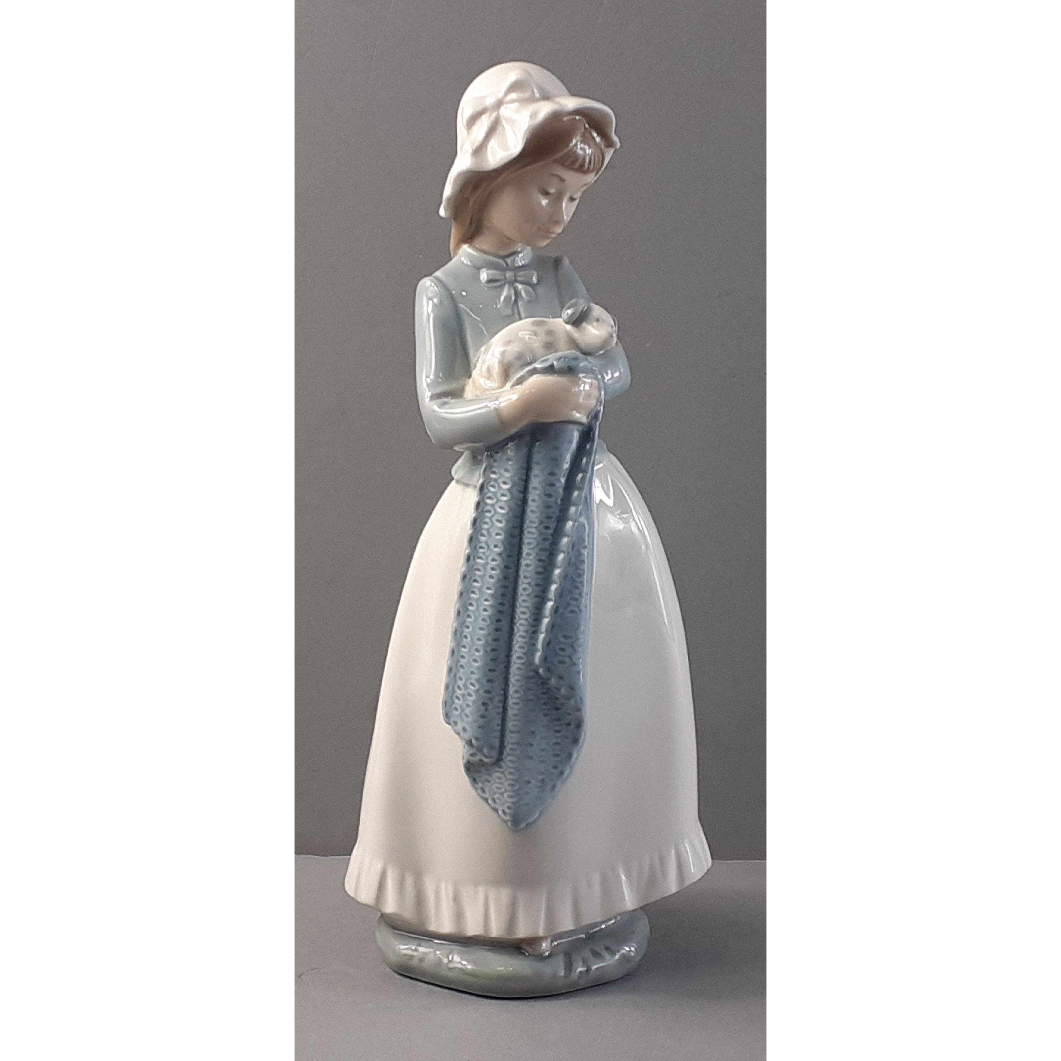 NAO cute girl with puppy figure. 25cm approx and in excellent condition with no chips or cracks.