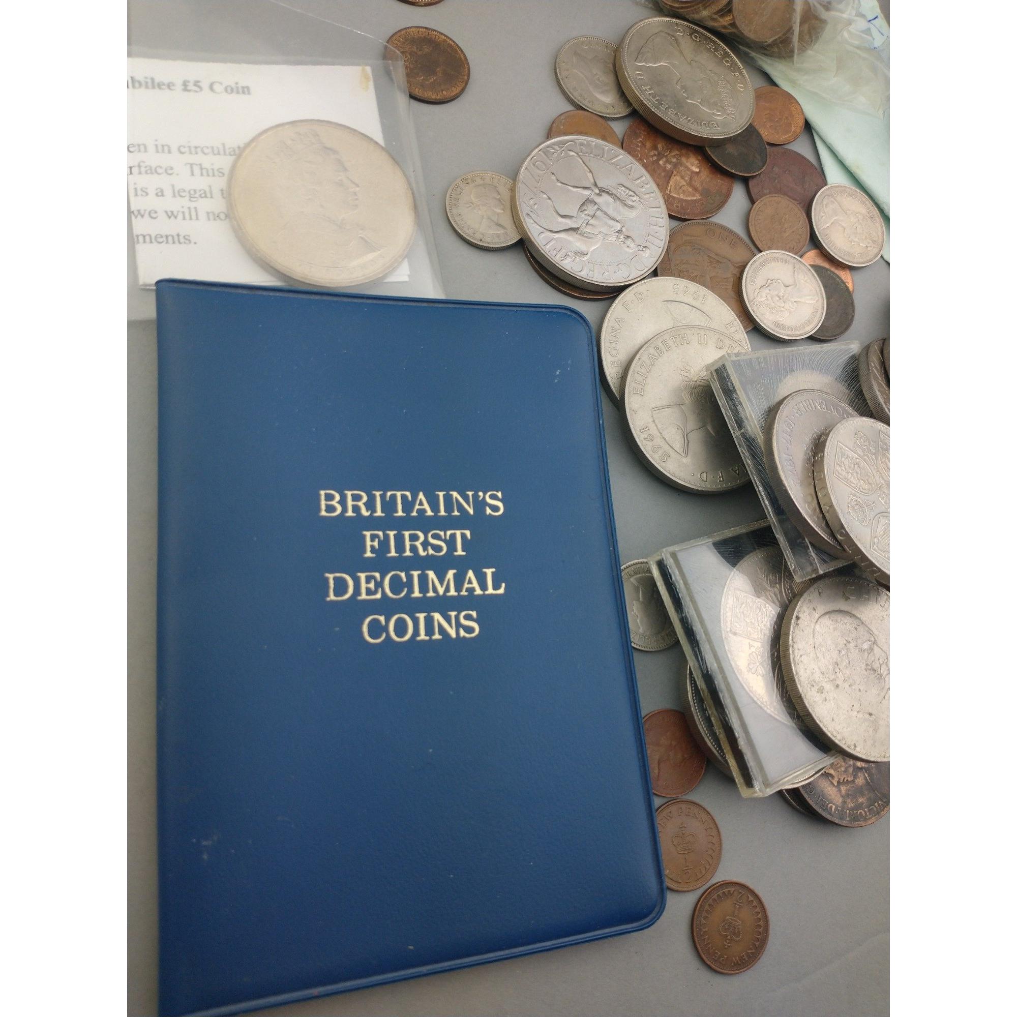 Assorted coin lot to include decimal sets, loose coins and a selection of Crowns including one £5.