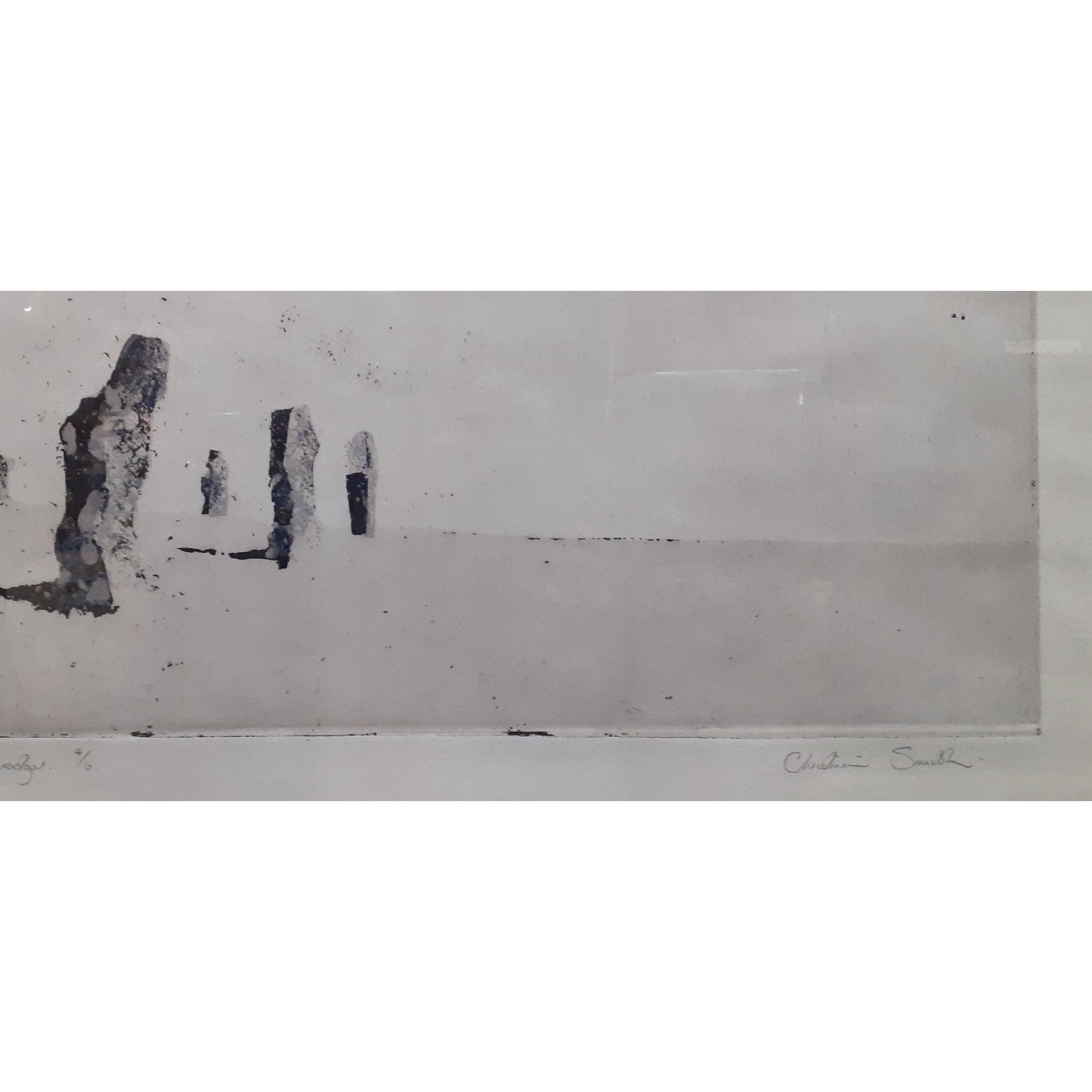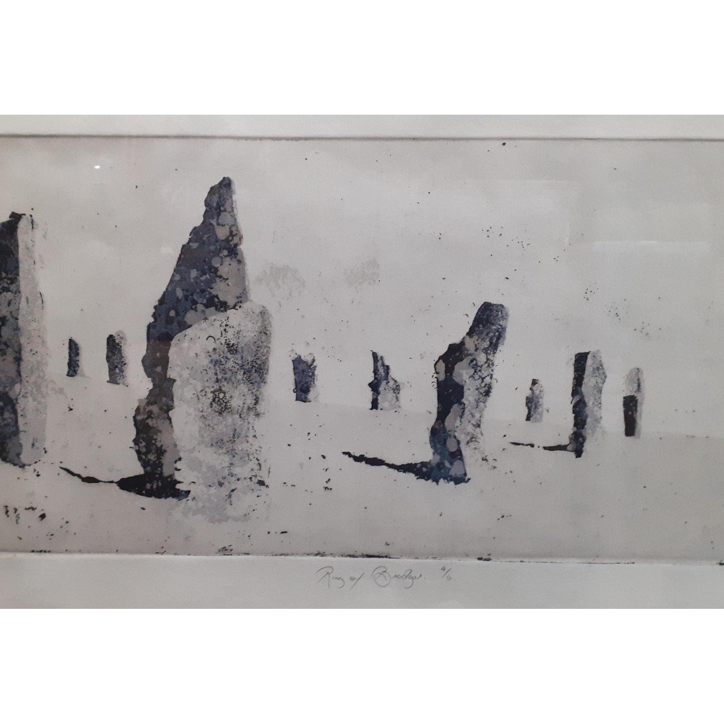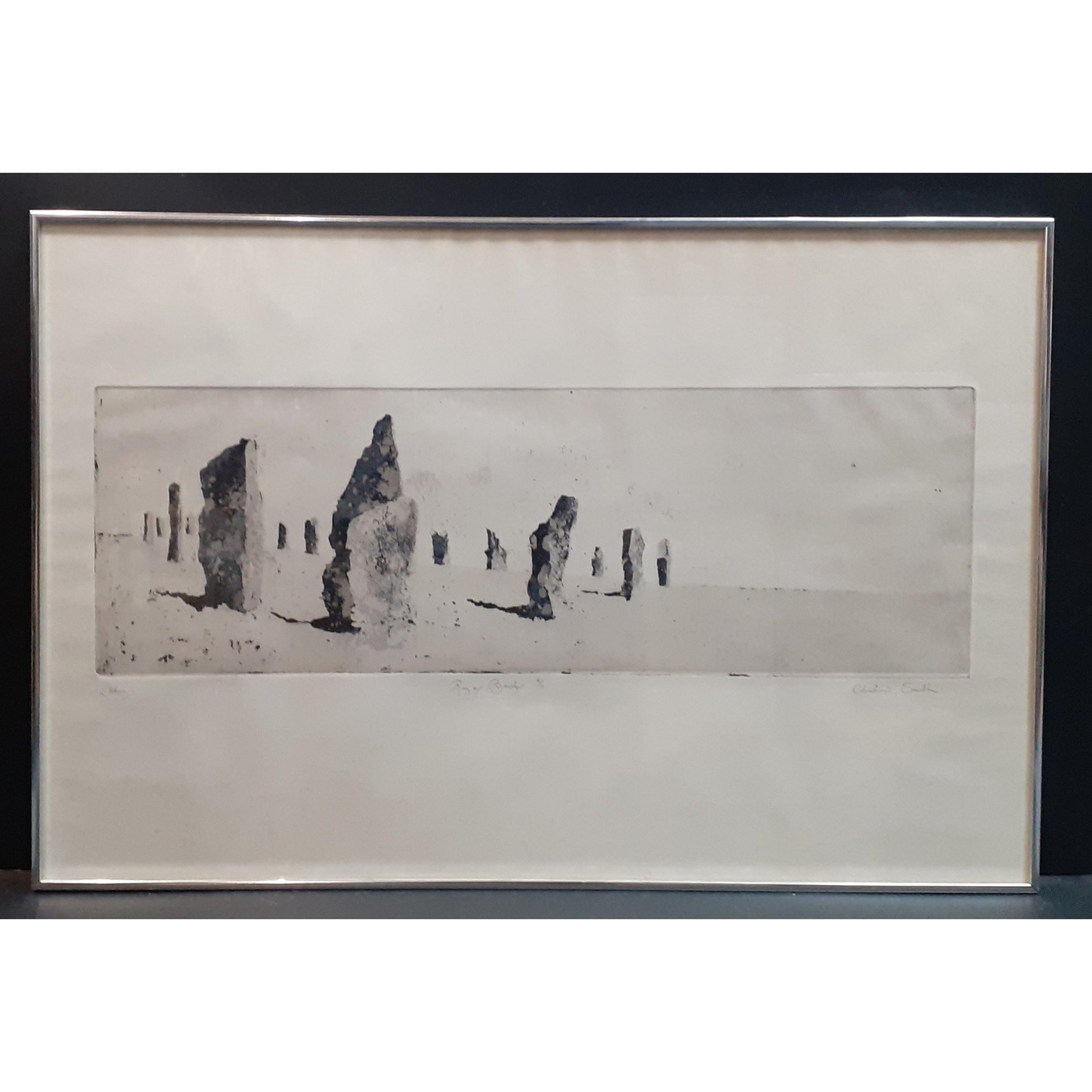 Large and atmospheric very limited edition (4/6) etching of "The Ring of Brodgar" on Orkney by Christine Smith on hand-made paper. Approx. 92cm x 60cm
