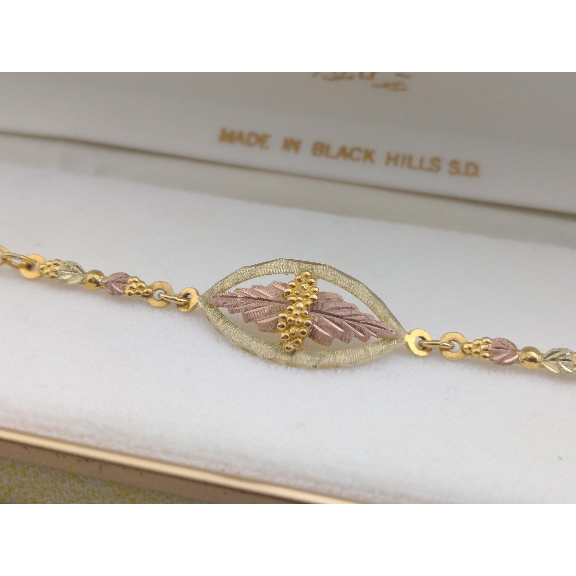 There's Gold in them thar Hills! 10K stamped LANDSTROMS Black Hills gold bracelet in case. 18cm long approx. 3.15g approx.