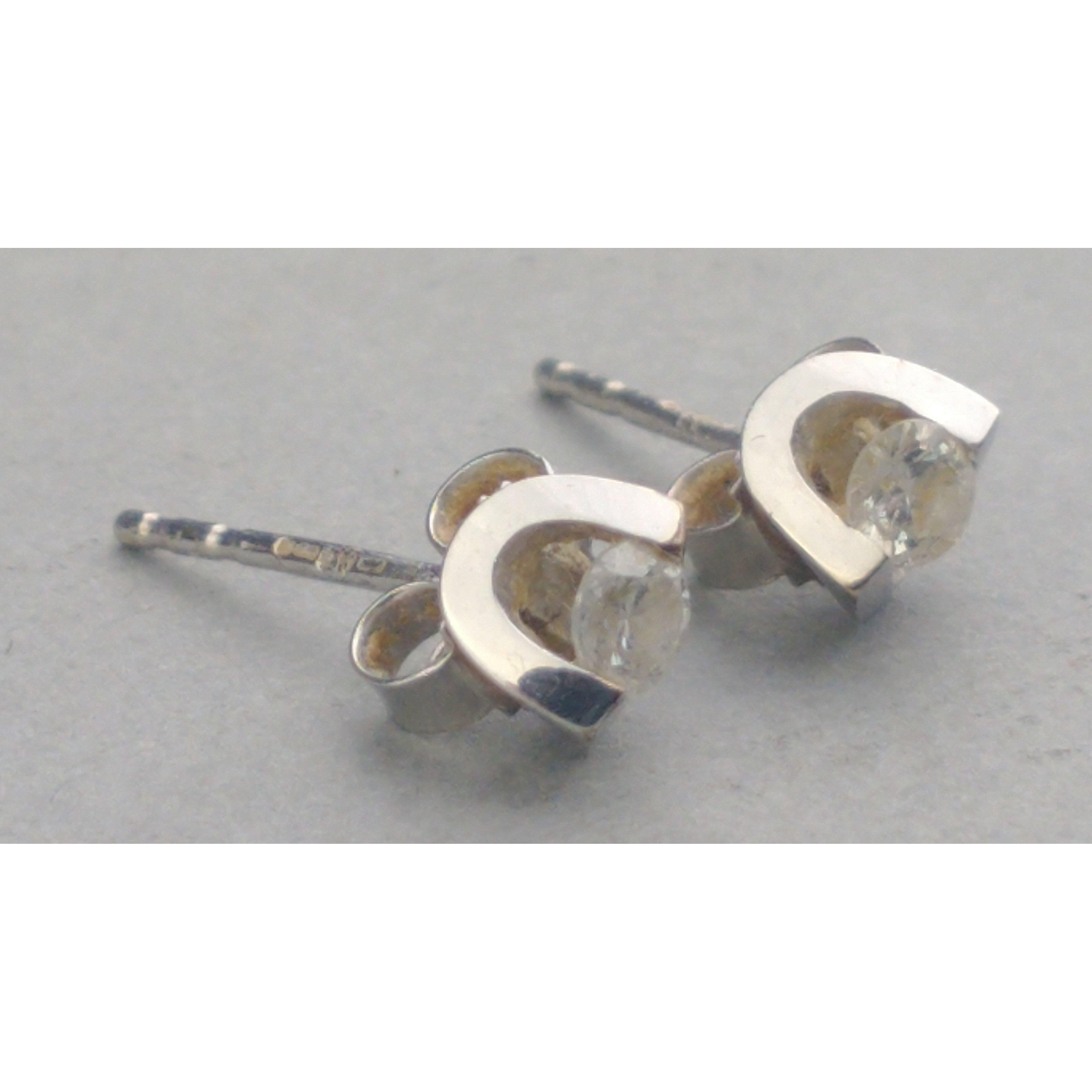 A pair of 375 stamped earrings with centre diamonds. Gross weight 0.8g. approx