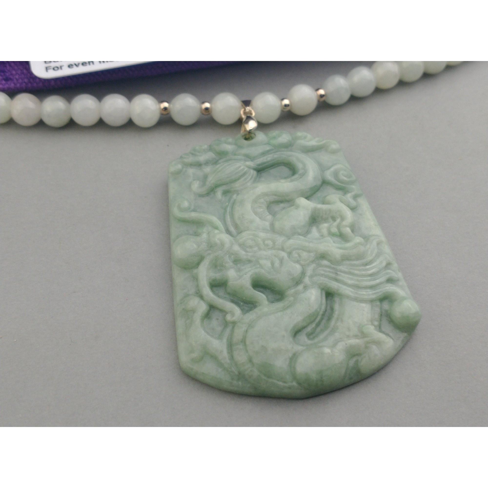 GEMPORIA - Type A Burmese jadeite sterling silver dragon carved necklace. Limited edition 1/398. Pendant 5cm approx, necklace 44cm approx. COAApprox 1 pieces