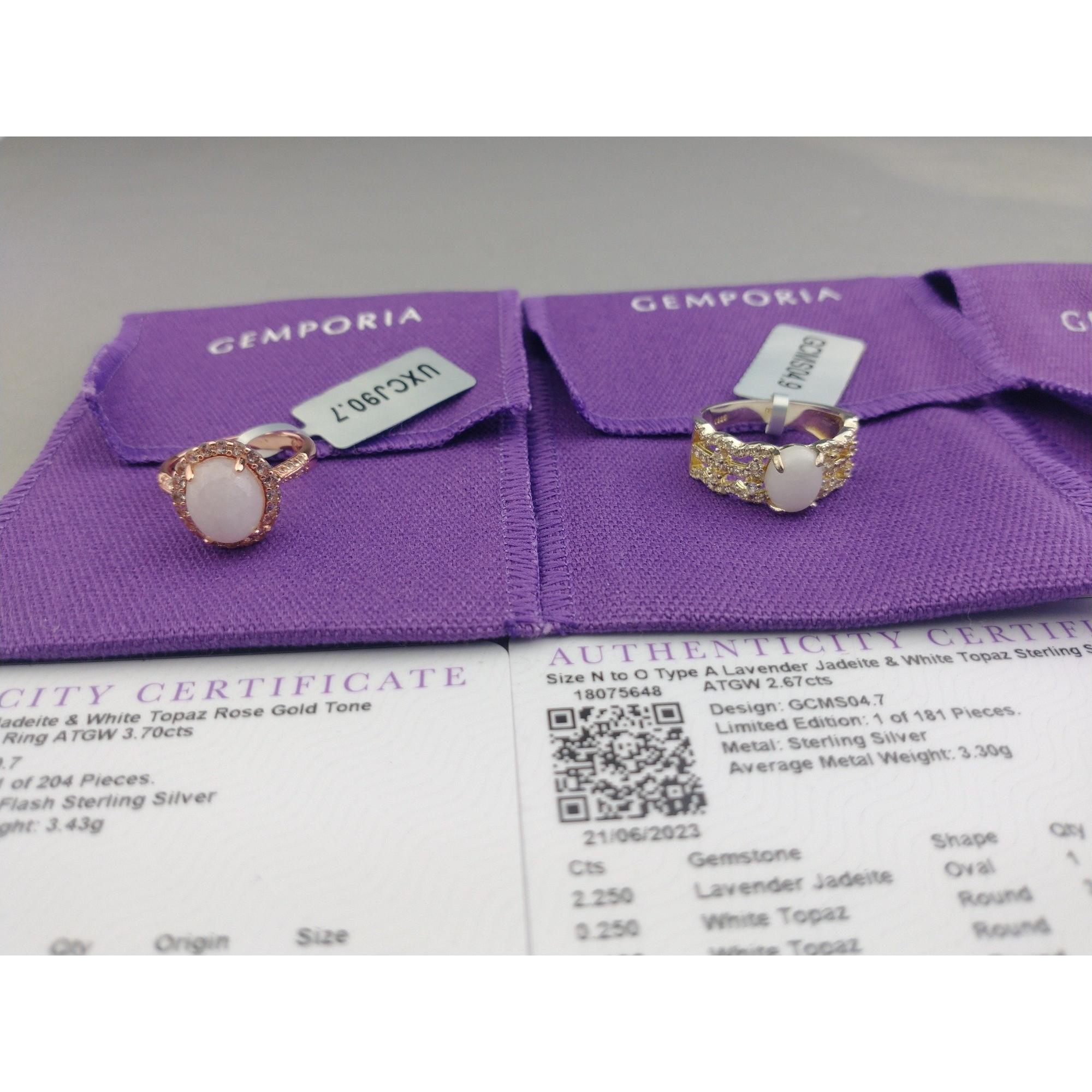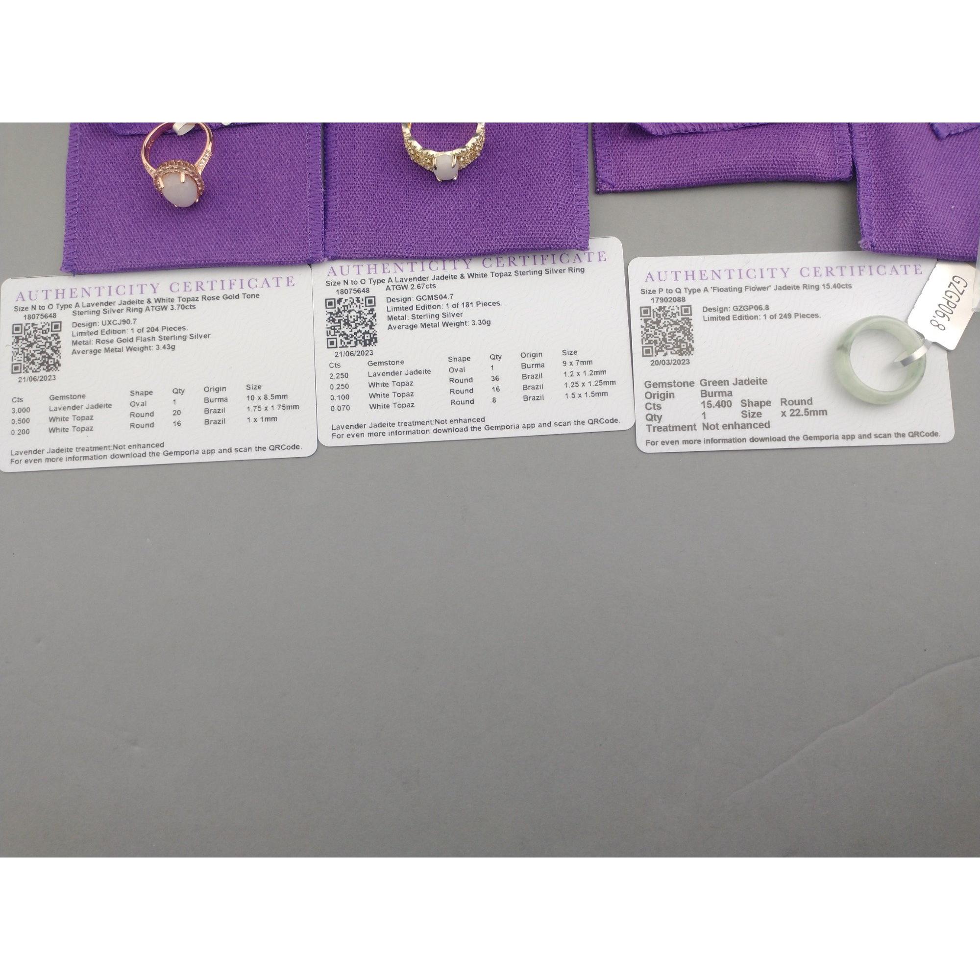 GEMPORIA - Six various rings, one jadeite. Sizes from M-Q. Some with COAApprox 6 pieces