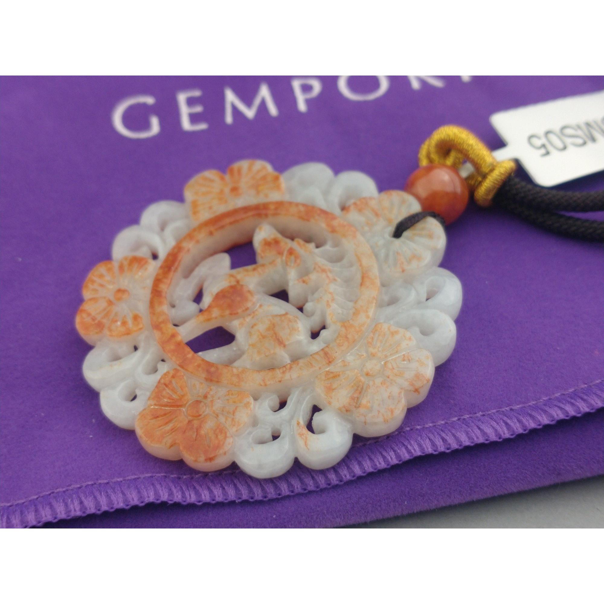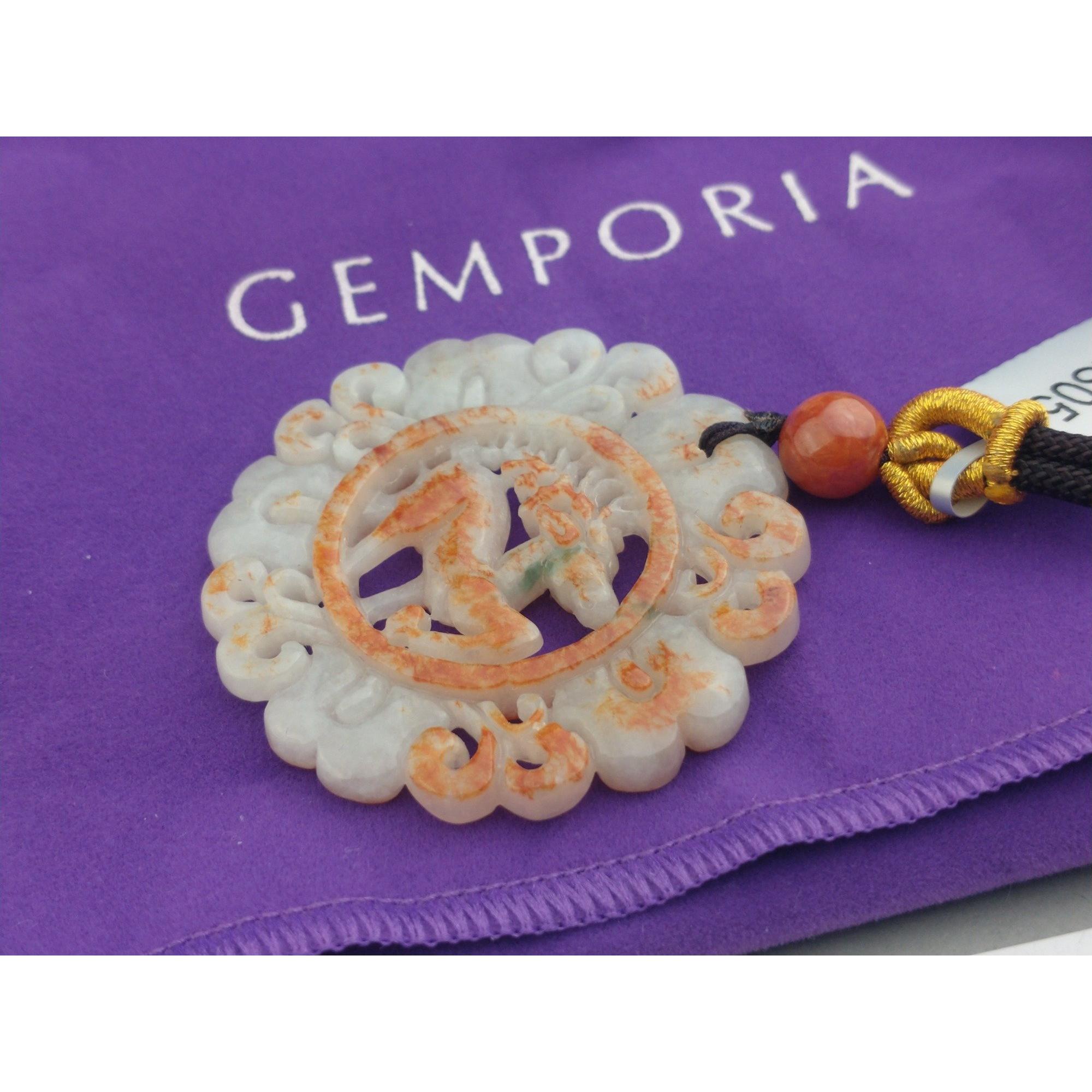 GEMPORIA - Pinyin type A bi-colour jadeite and type A red jadeite carved rope necklace 96cts, pendant 5cm approx. Necklace 70cm approx. Limited edition 1/142. With COAApprox 1 pieces