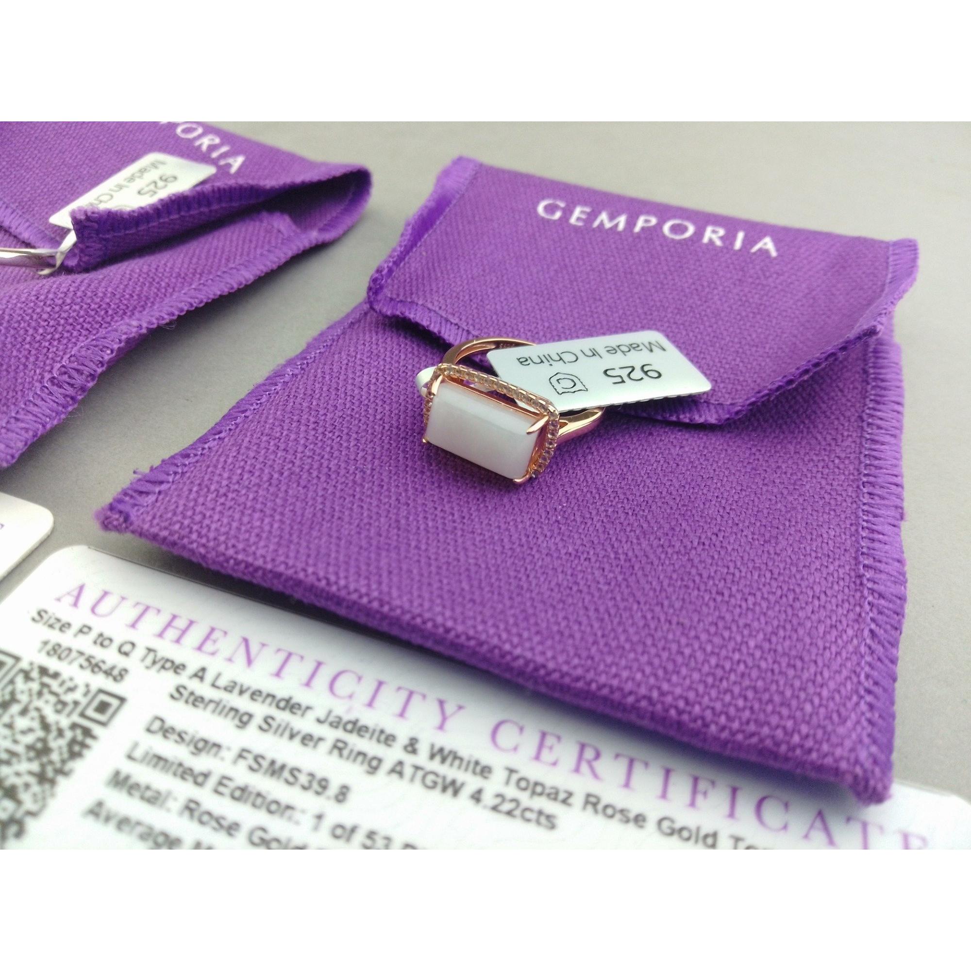 GEMPORIA - two silver rings size P-Q one lavender jadeite & white topaz (1/53), the other 15cts golden silk quartzite jade (1/50). COAApprox 2 pieces