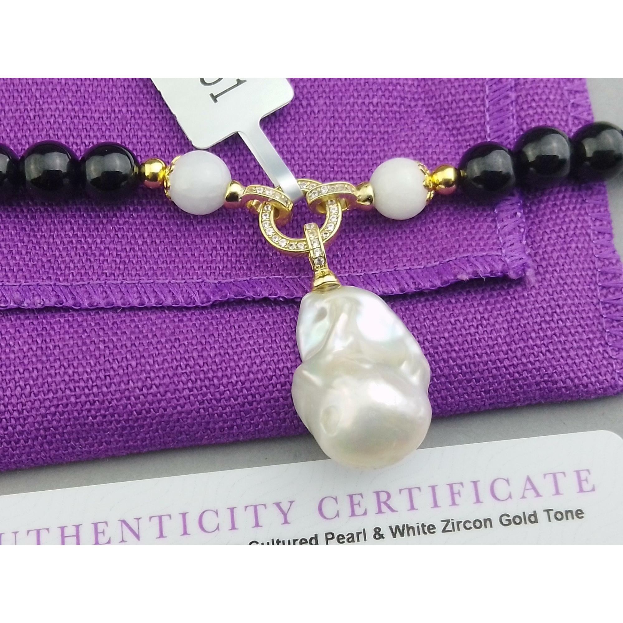 GEMPORIA - Type A Burmese baroqie cultured pesrl & white zircon tone sterling silver necklace. Limited edition 1/178, 50cm length approx. COAApprox 1 pieces