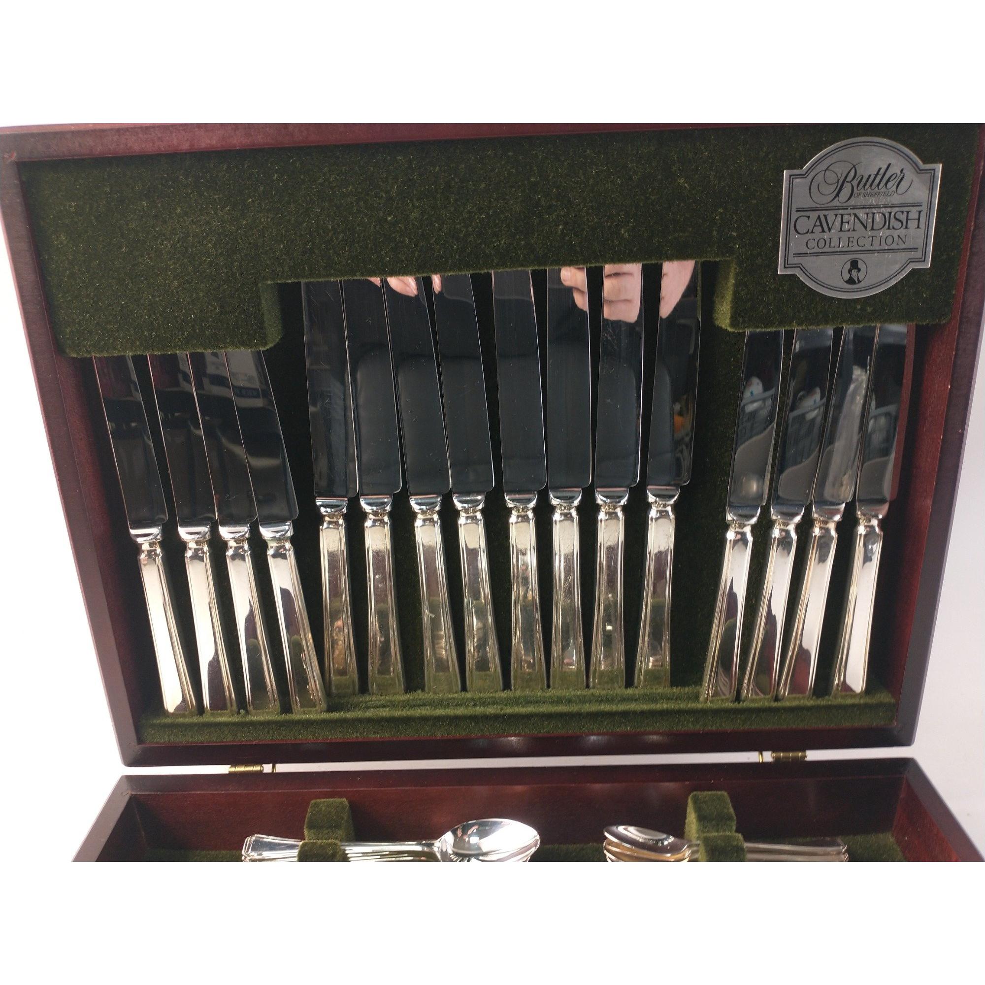 A BUTLER OF SHEFFIELD EPNS Cavendish collection canteen of cutlery for 8 persons. Boxed excellent condition.Approx 1 pieces