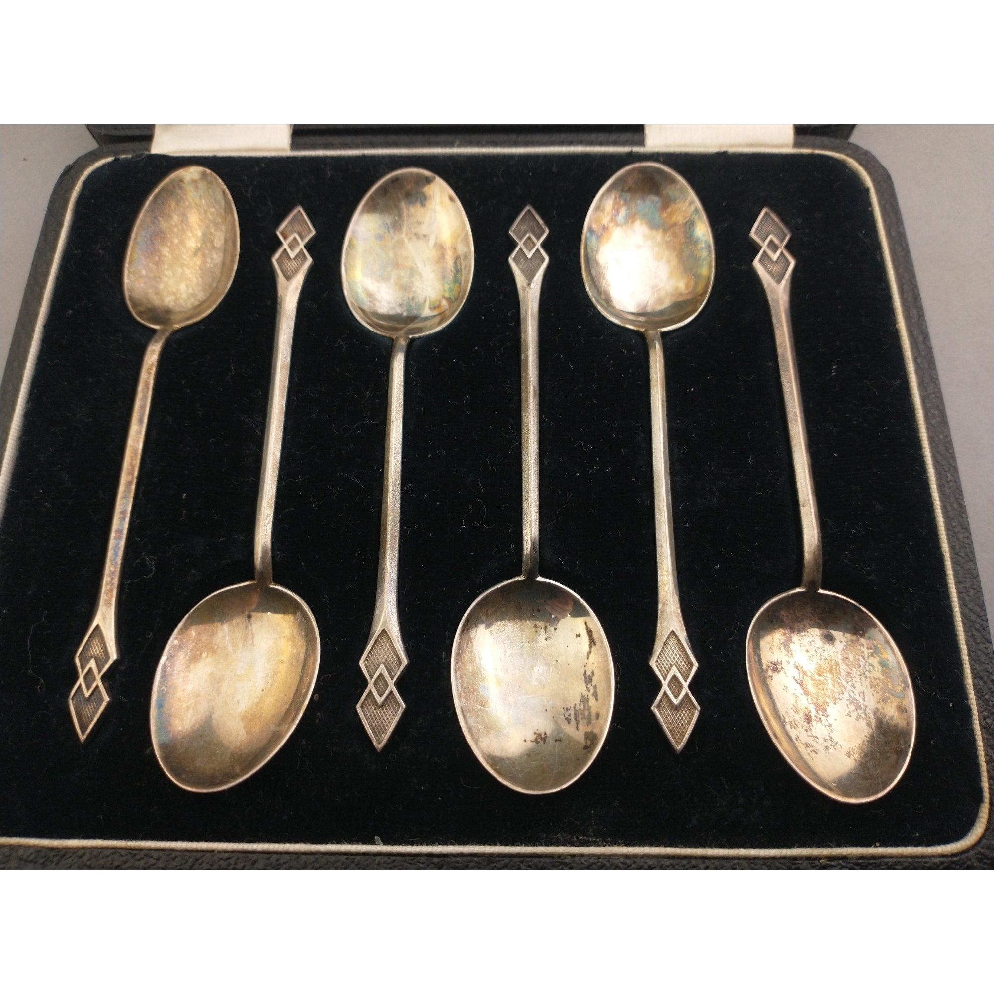 A boxed set of six Art Deco style spoons hallmarked Birmingham 1935, weight 48g approxApprox 1 pieces