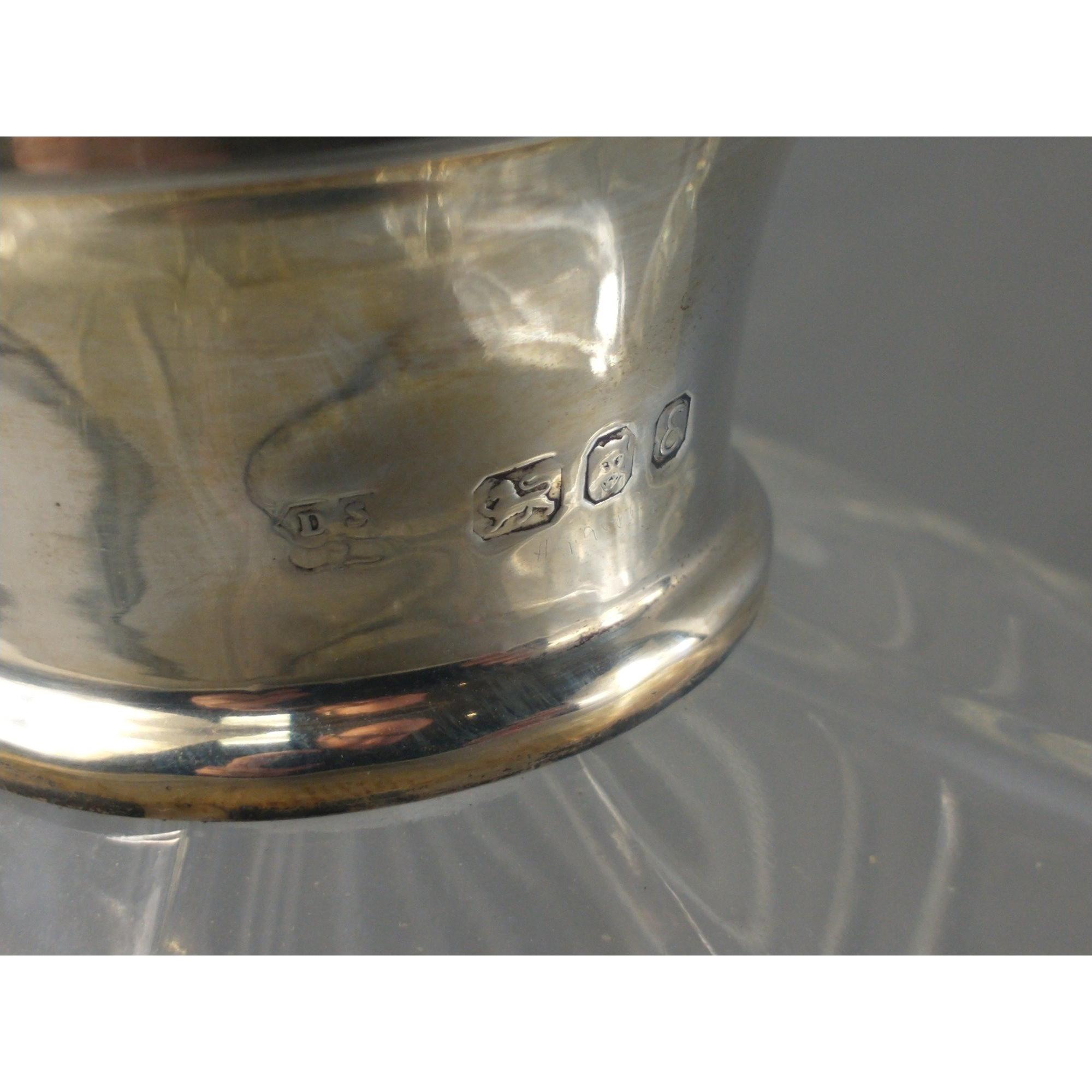An impressive heavy cut glass decanter with silver hallmarked collar. Hallmarked London 1979. A super example in nice condition.