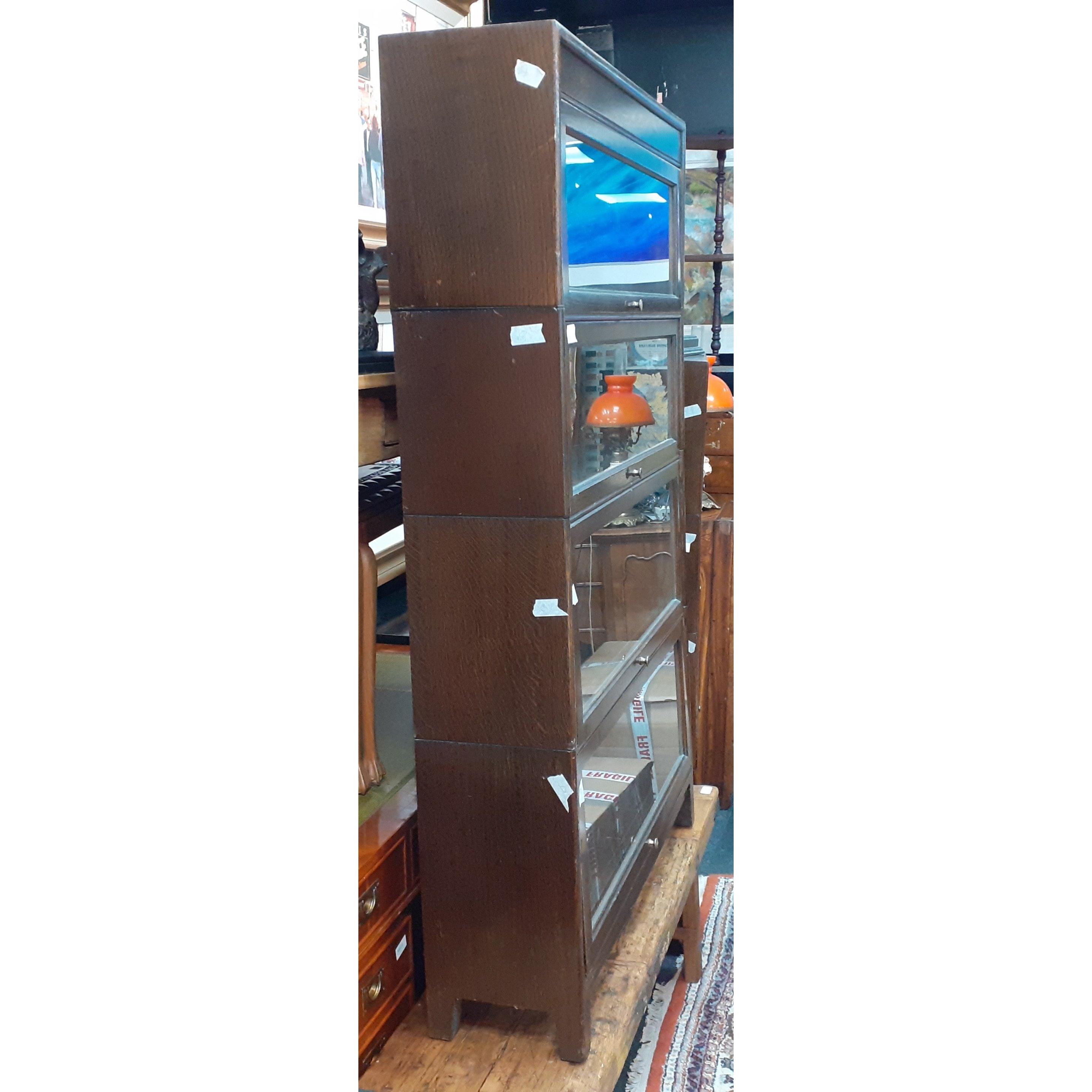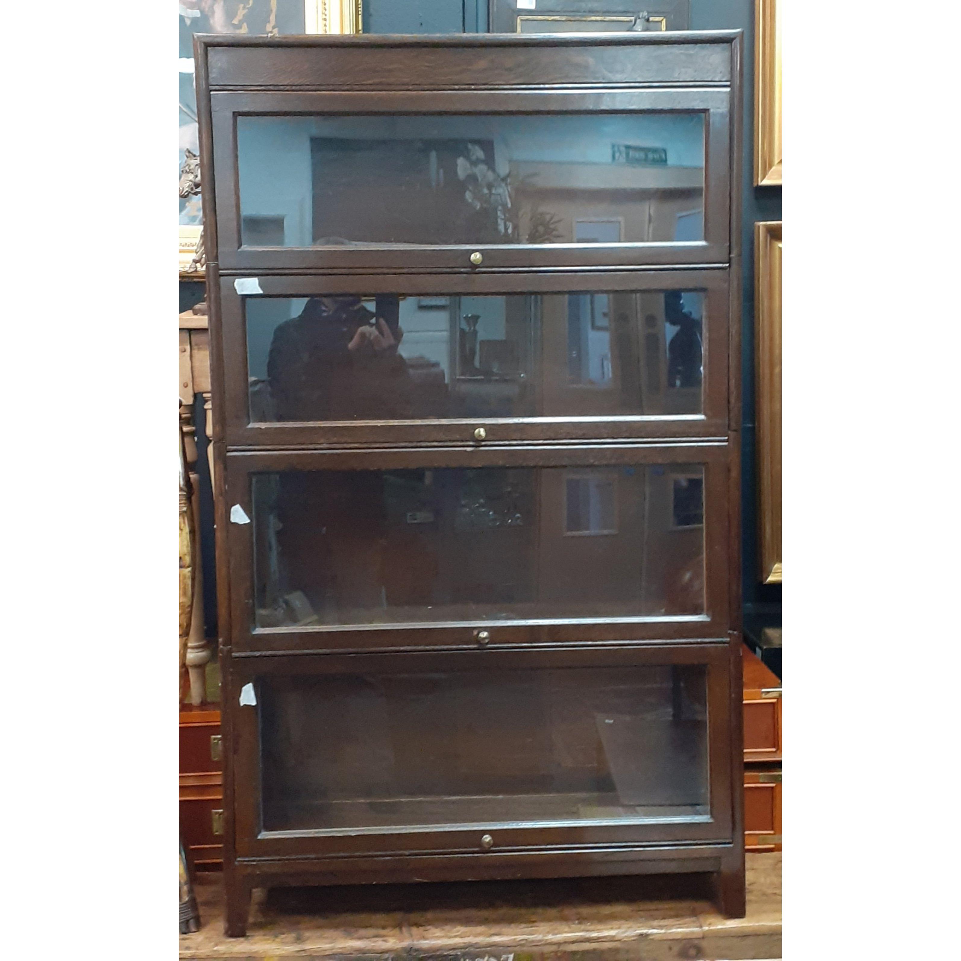 A second set of four early 20th century Gunn Furniture stack solicitors bookcases c.1899. In dark oak. Height 146cm Width 87cm, Depth 25cm.Approx 4 pieces