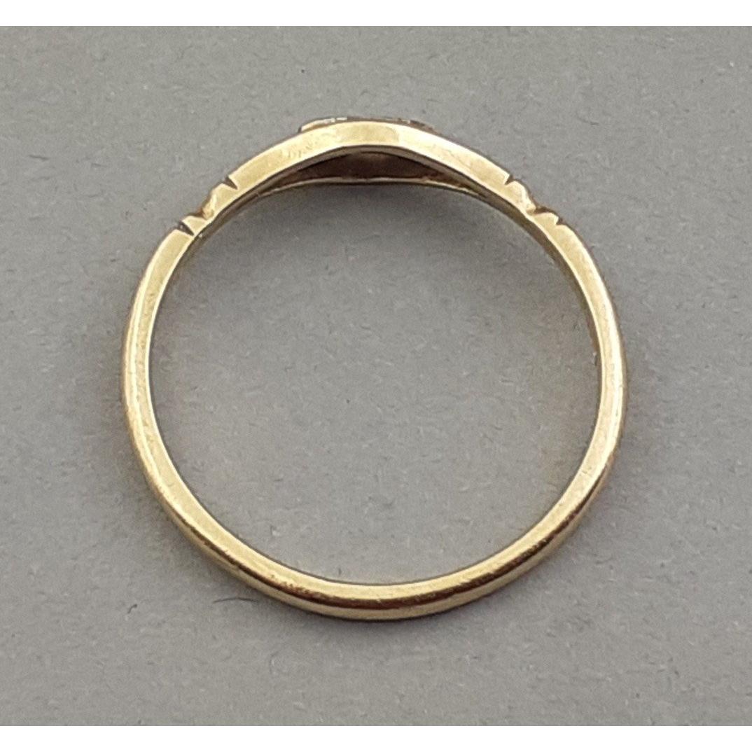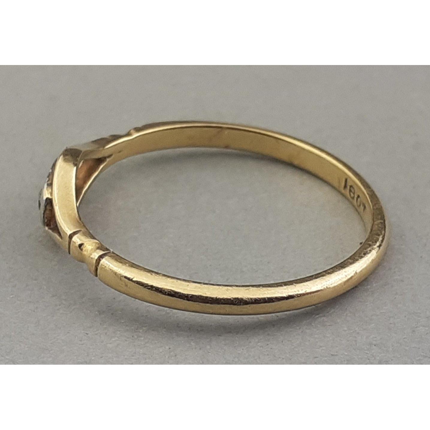 An 18ct stamped ring size O with two small white stones inset - gross weight 1.68g approx