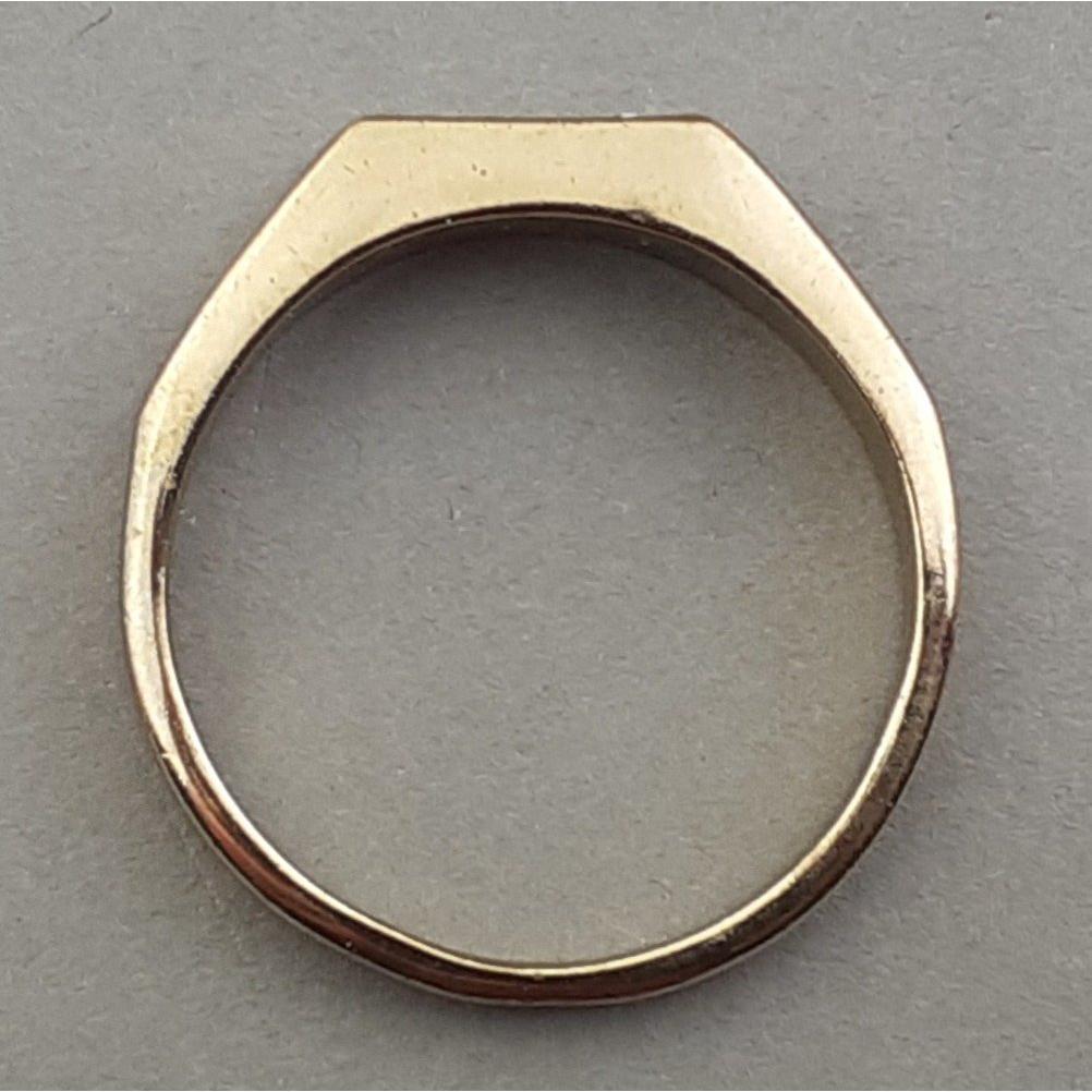 An unmarked yellow metal ring with two small white stones (for info does not react to a magnet) gross weight 2.72g approx