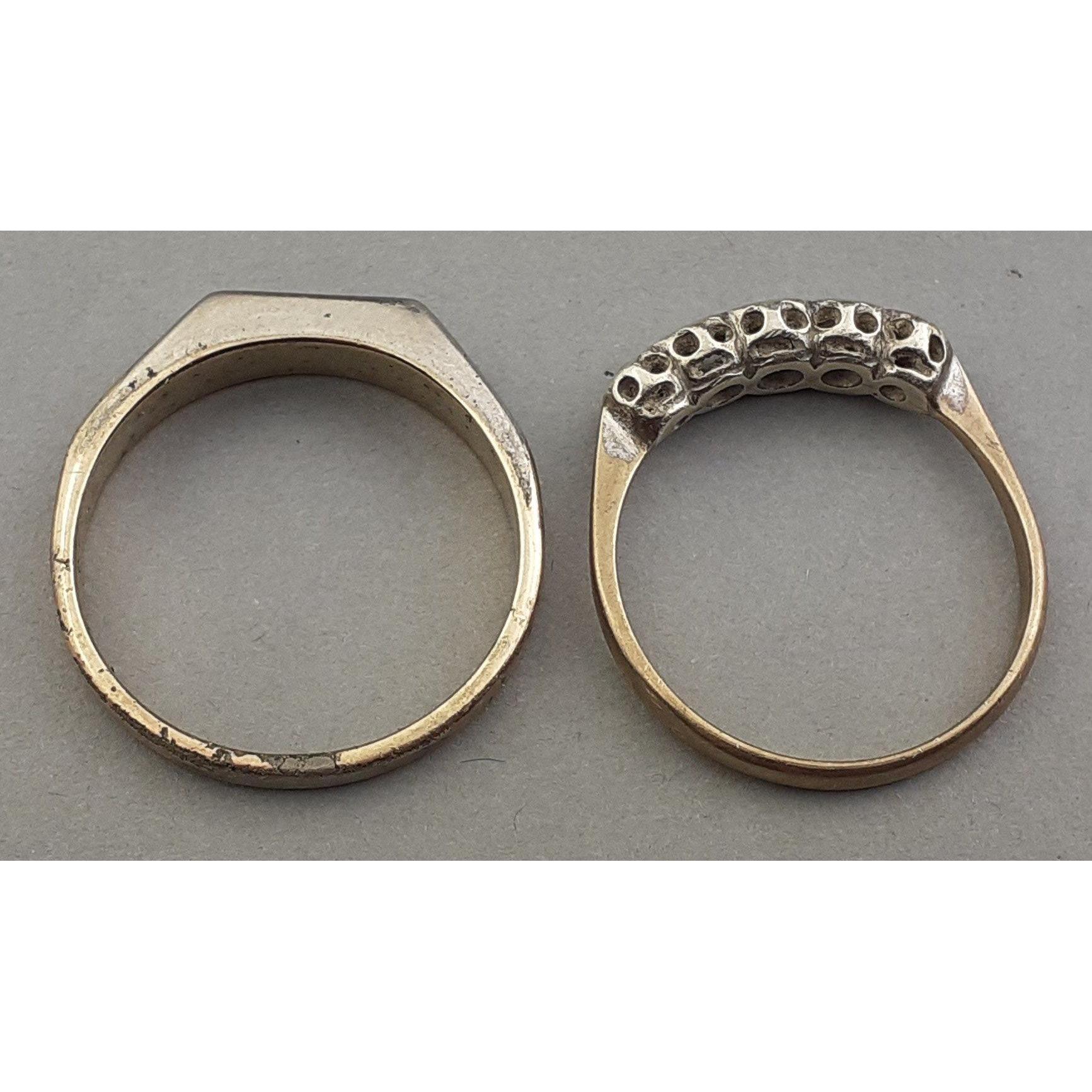 9ct stamped ring with white stones (one missing) gross weight 1.68g and one other costume ringApprox 2 pieces