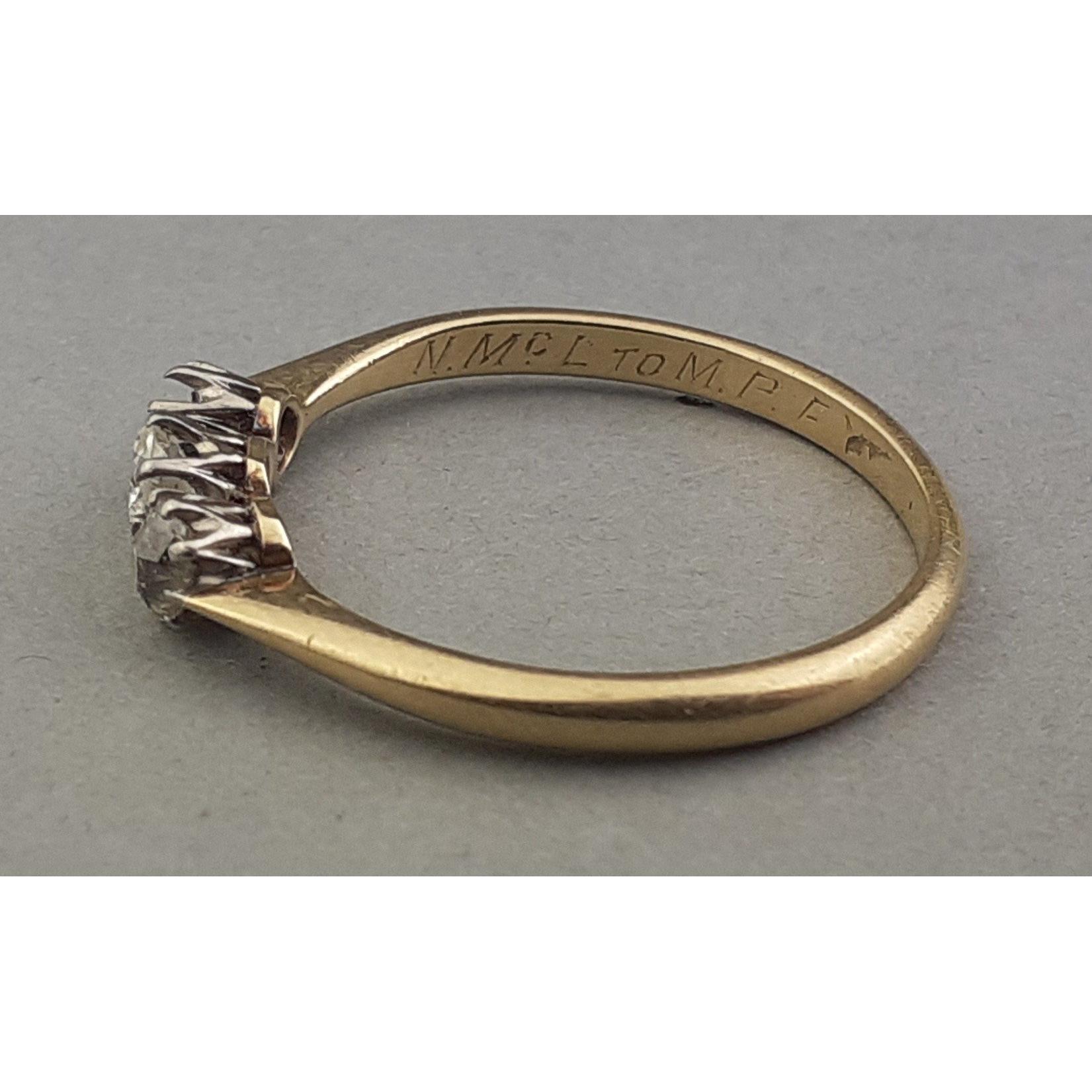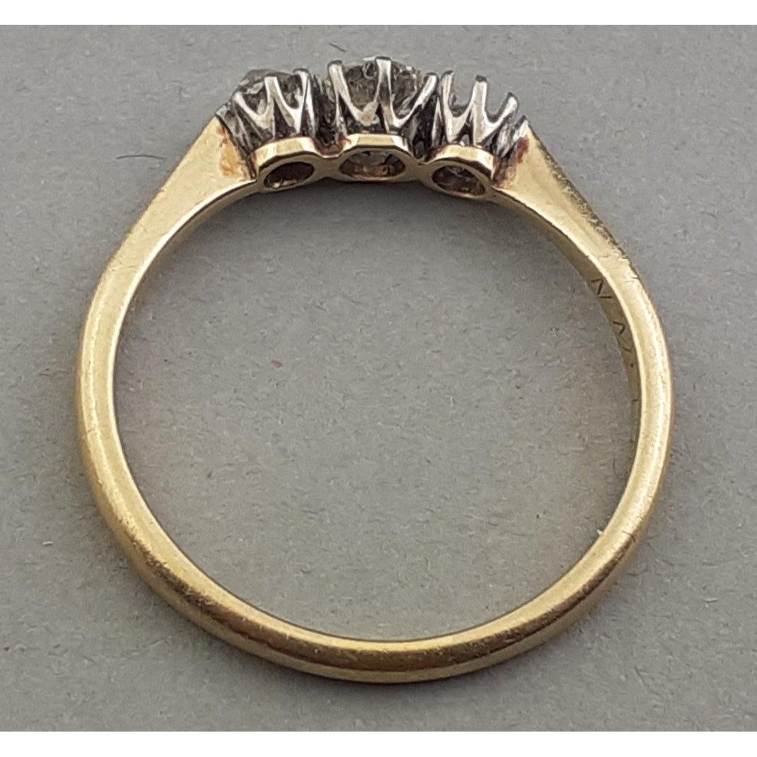 An 18ct stamped trio of DIAMONDS ring (one missing) - largest centred diamond 4mm approx diameter - gross weight 2.52g approx