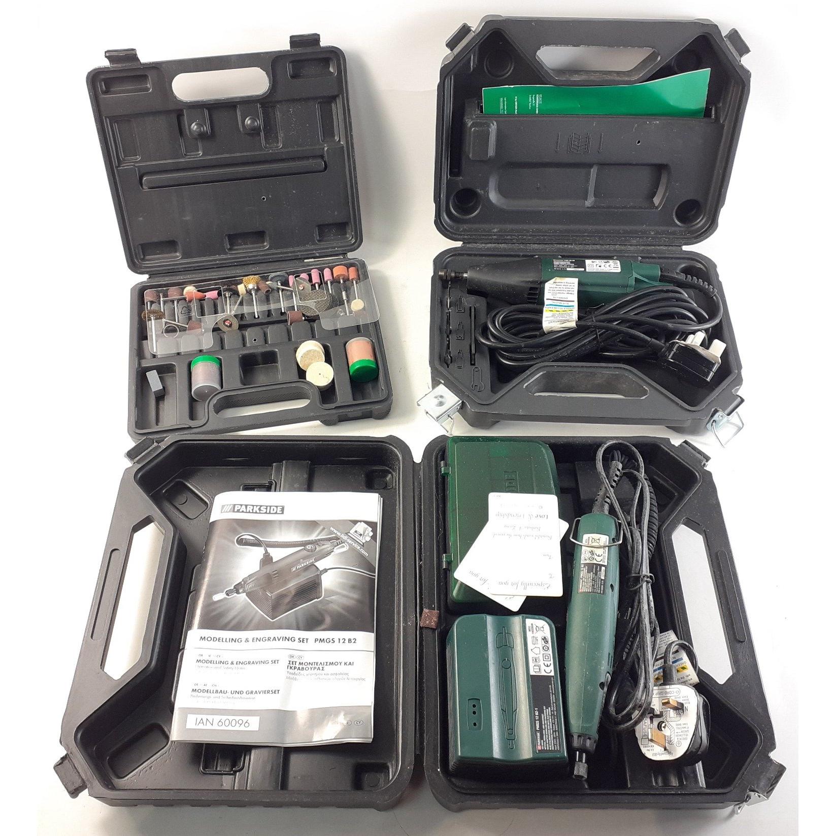 A boxed PARKSIDE modelling & engraving set PMGS12 B2, PARKSIDE power carving tool PSG50 B2 and a POWERFIX Profi set of bitsApprox 3 pieces