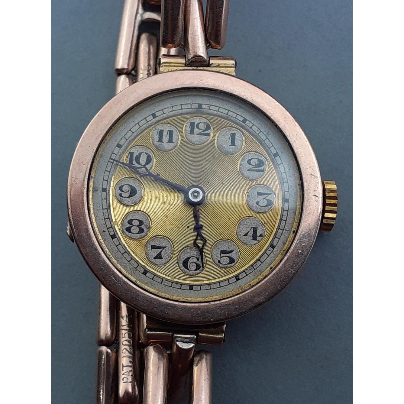 A 375 stamped cased ladies VINTAGE wristwatch with an indistinct stamped bracelet also - gross weight 18.22g approx