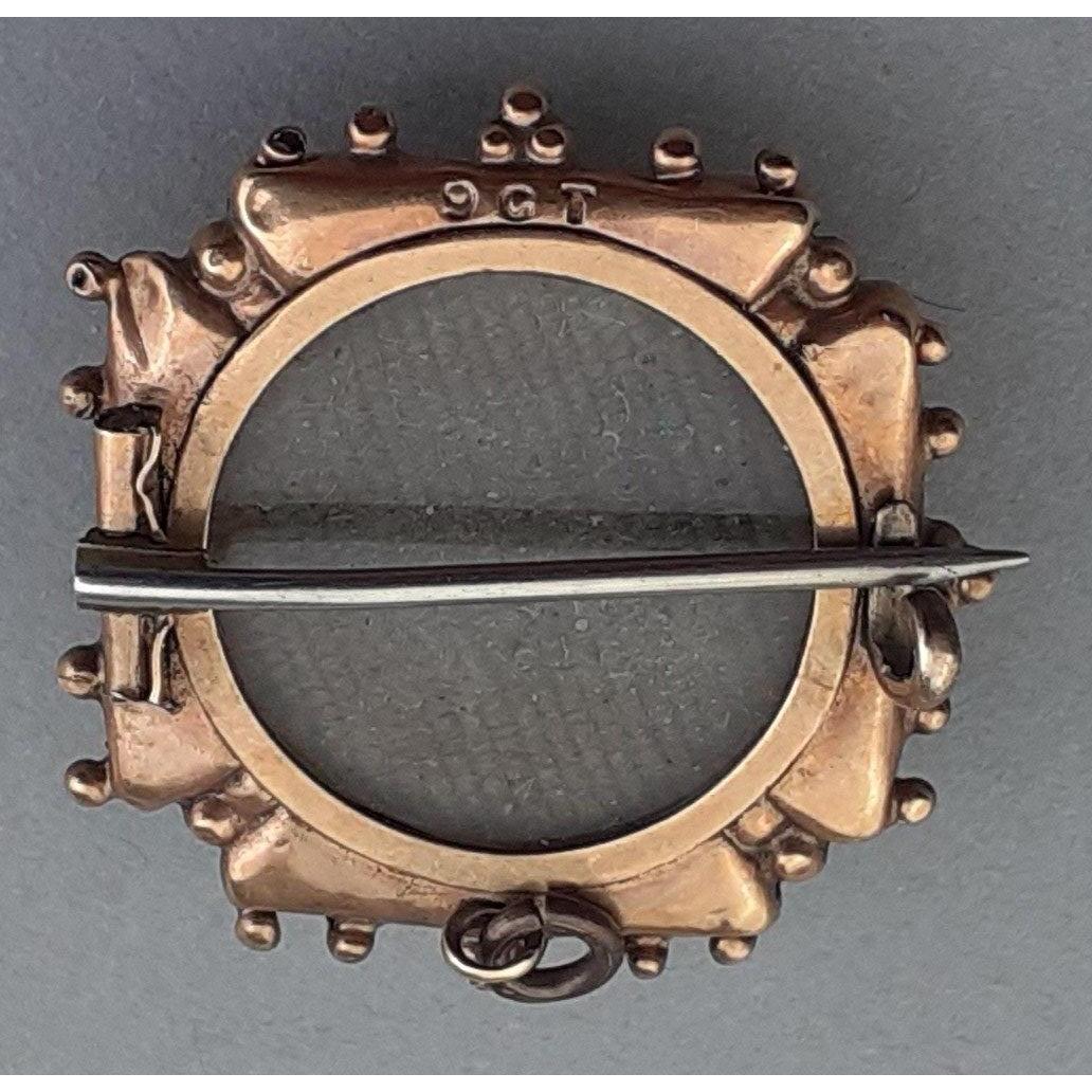 AN EDWARDIAN 9ct mourning brooch with steel pin (front dented-in) - gross weight 3.33g approx - dimension 2cm square approx