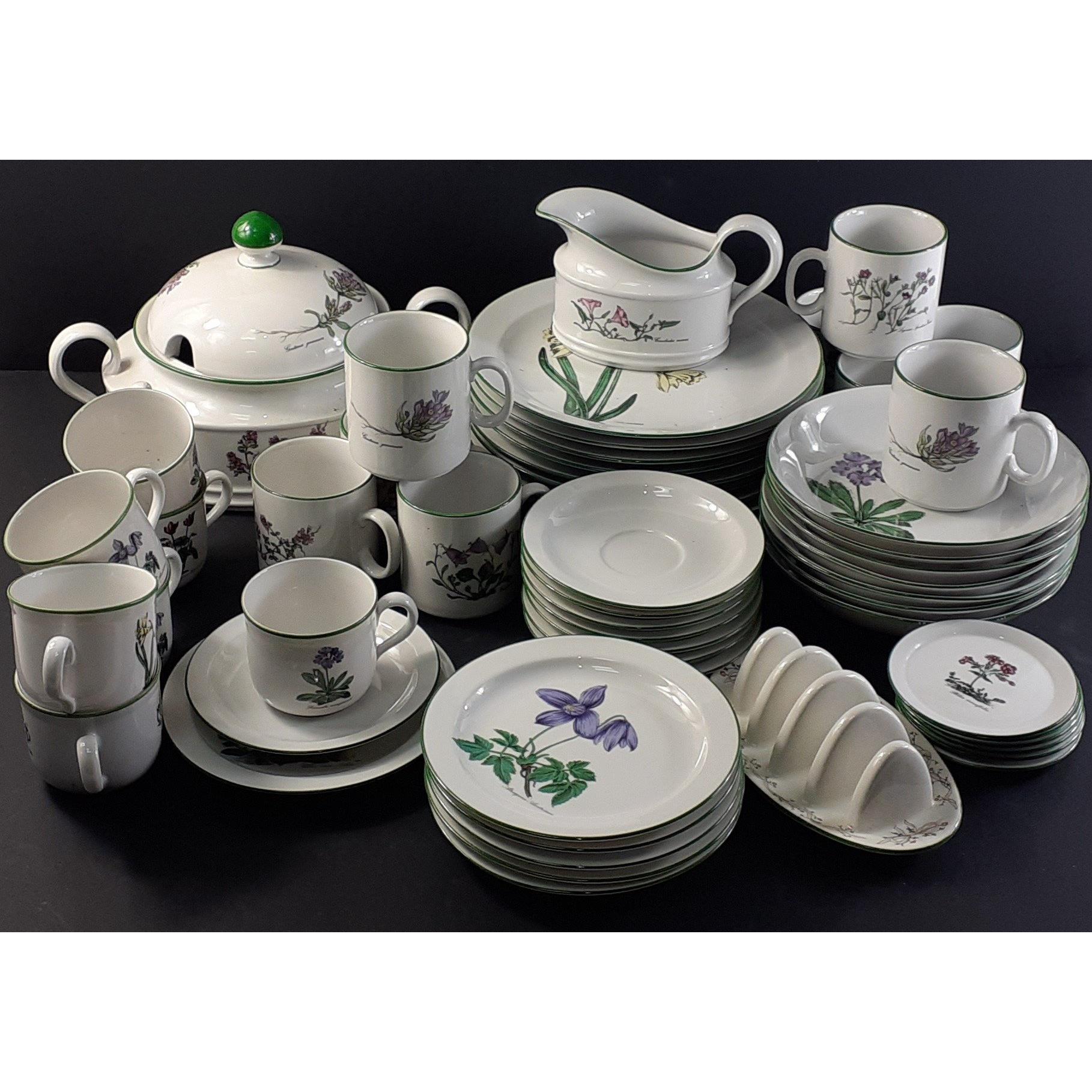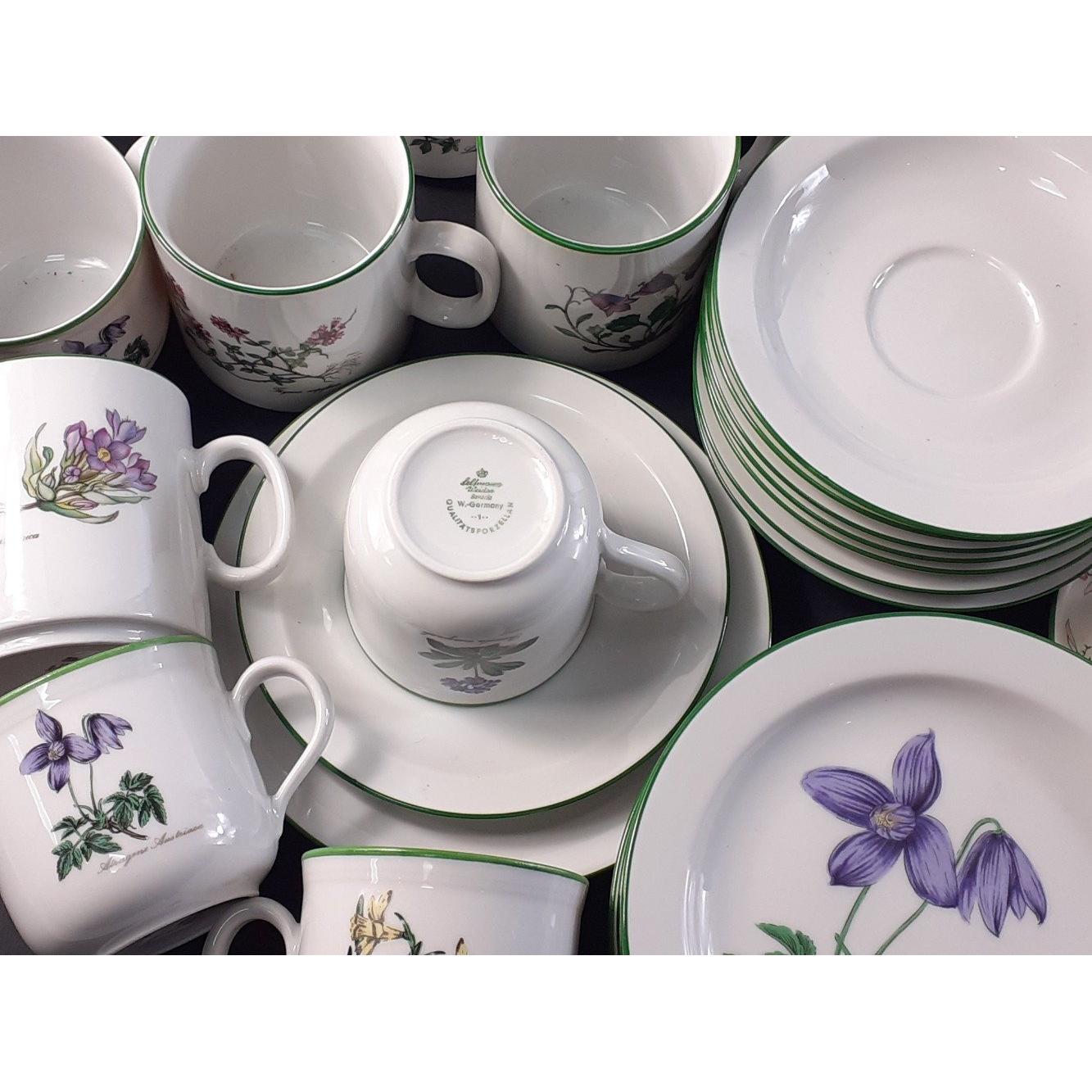 A SELFMANN WEIDEN dinner service including 8 dinner plates, 6 side plates, 7 dessert bowls, 8 tea saucers, 9 tea cups, 7 coffee cups, 6 coffee saucers, 1 cream jug, 1 sugar bowl, 1 gravy jug, 1 serving dish with lid
