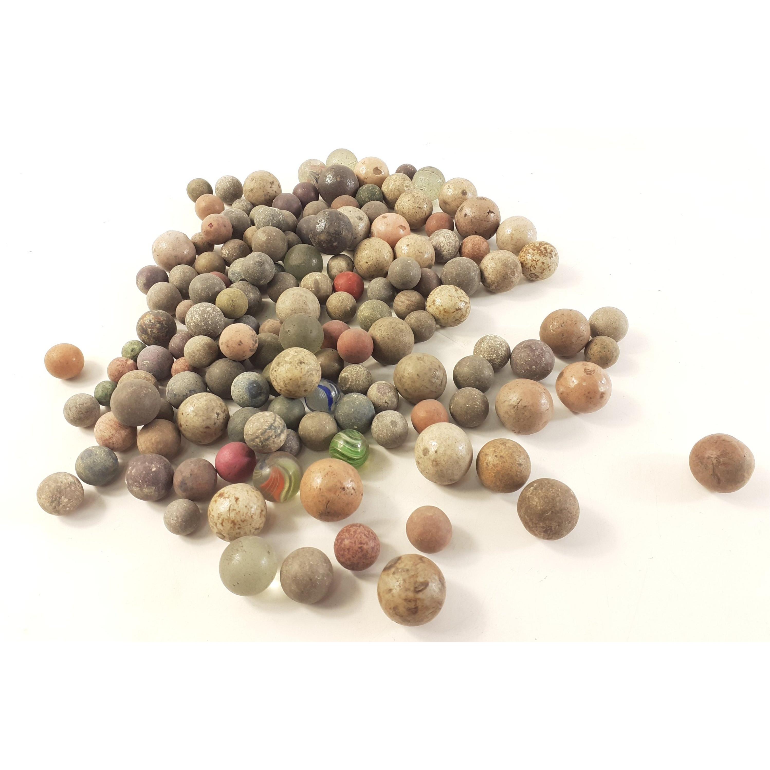 A tub FULL of ANTIQUE clay marbles - UNUSUAL!
