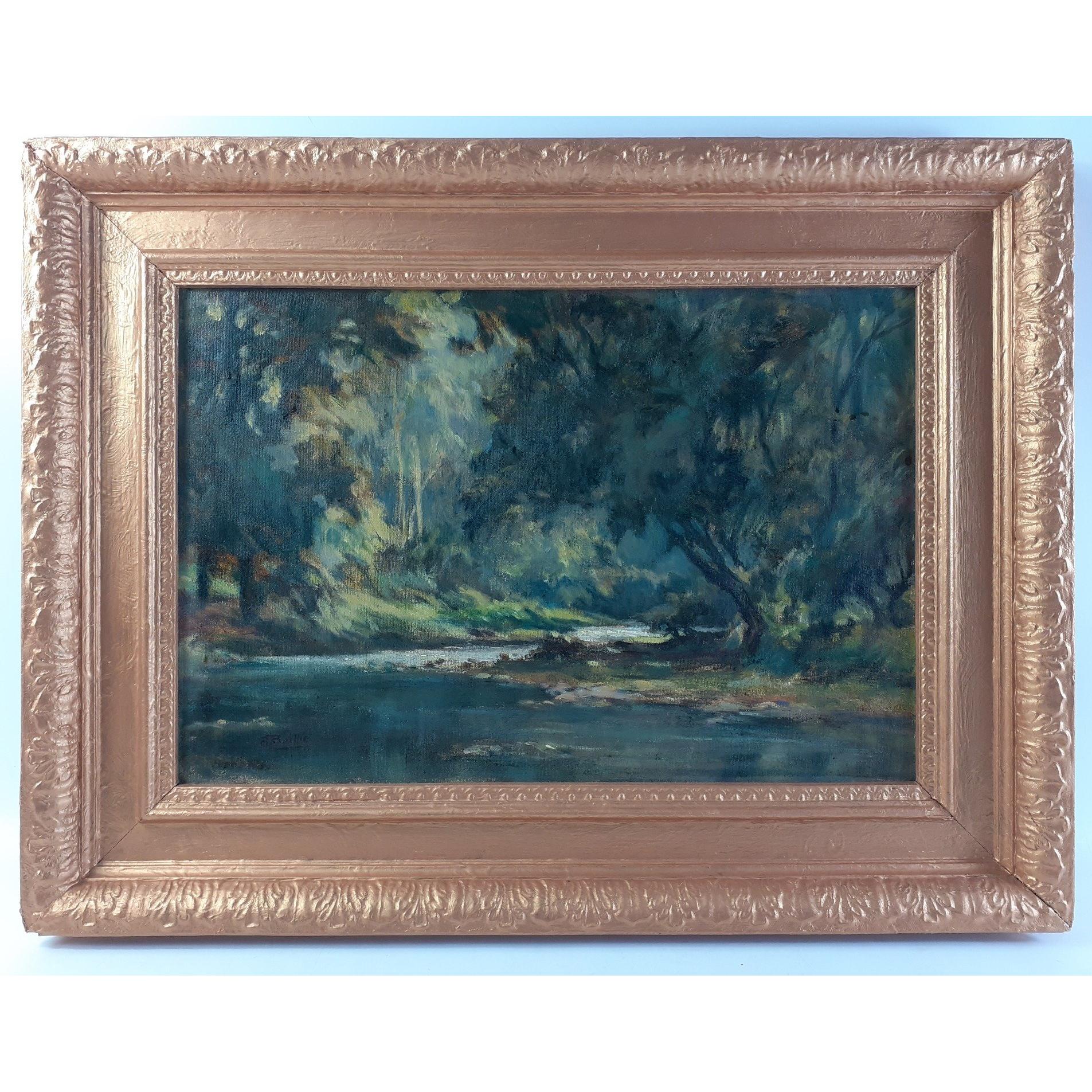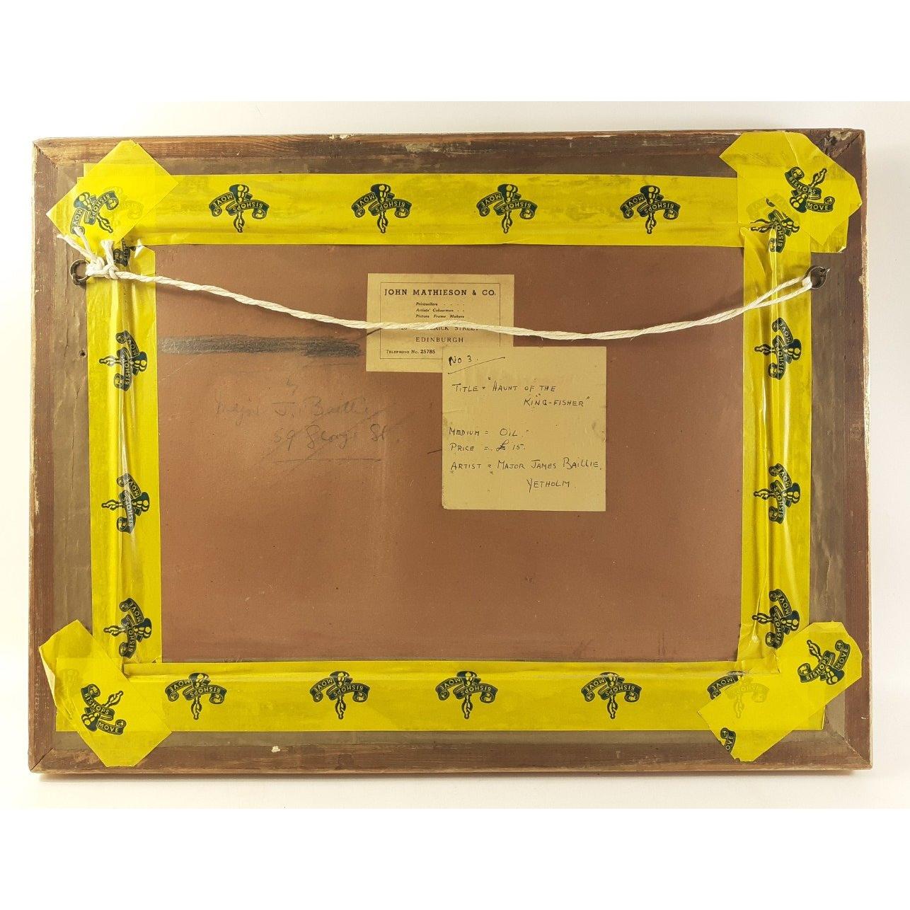 ORIGINAL OIL ON BOARD framed 'Haunt Of The Kingfisher' by artist Major James Baillie of YETHOLM - frame size 59cm x 45cm approx