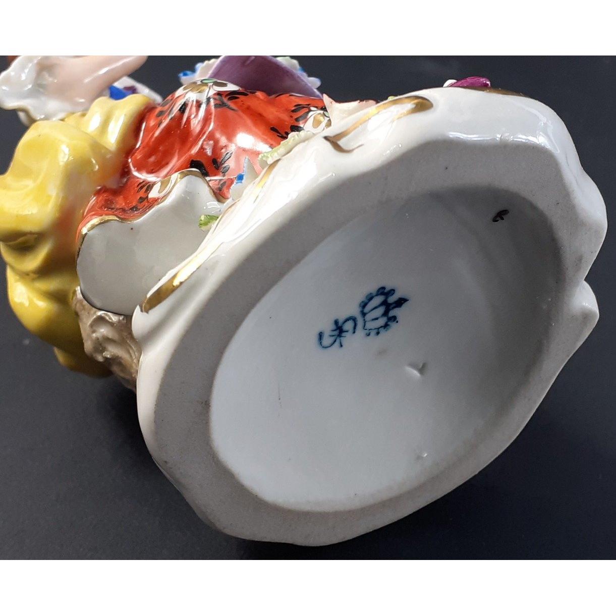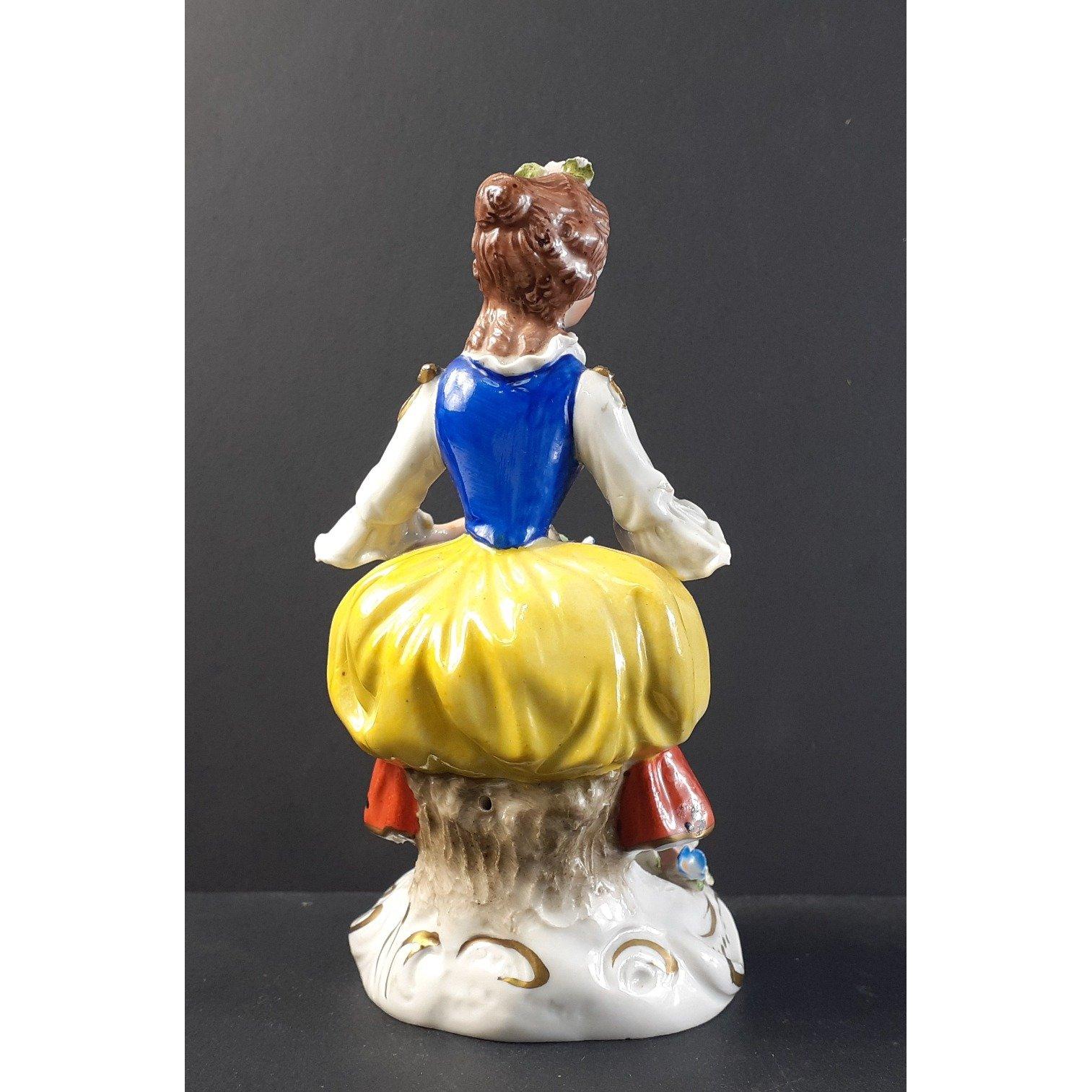 SITZENDORF stamped porcelain figure of a lady. 13cm tall approx. Lovely figure in overall good condition. Minor damage noted to right thumb.