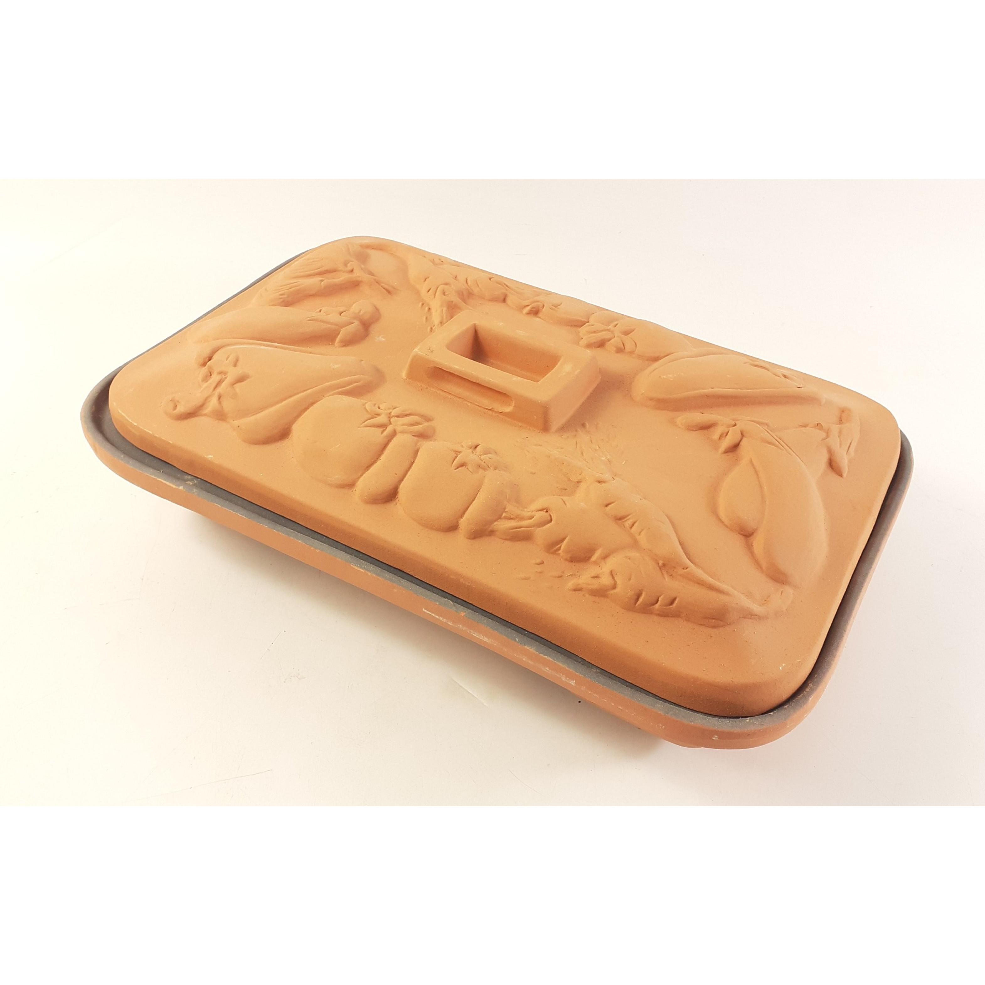 CERAMART Italy Terracotta Covered Sectioned Serving Roasting Dish. 30cm approx and in good condition.