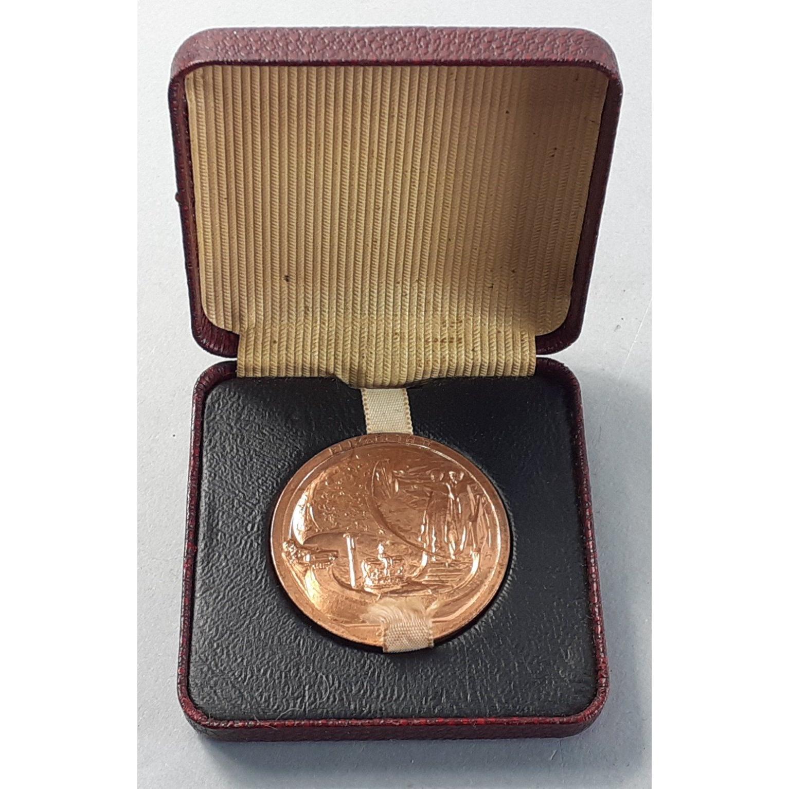 A large copper coin in case. 2 June 1953 Coronation medal.