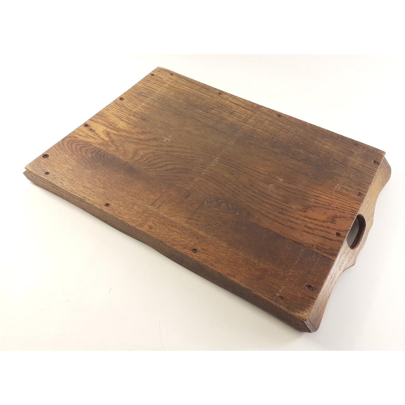 An unusual Edwardian wood service tray with copper reinforced handles. 50cm x 35cm approx. In overall good useable condition.