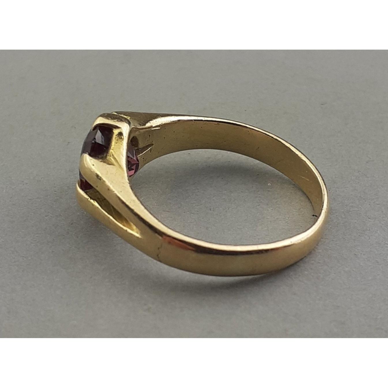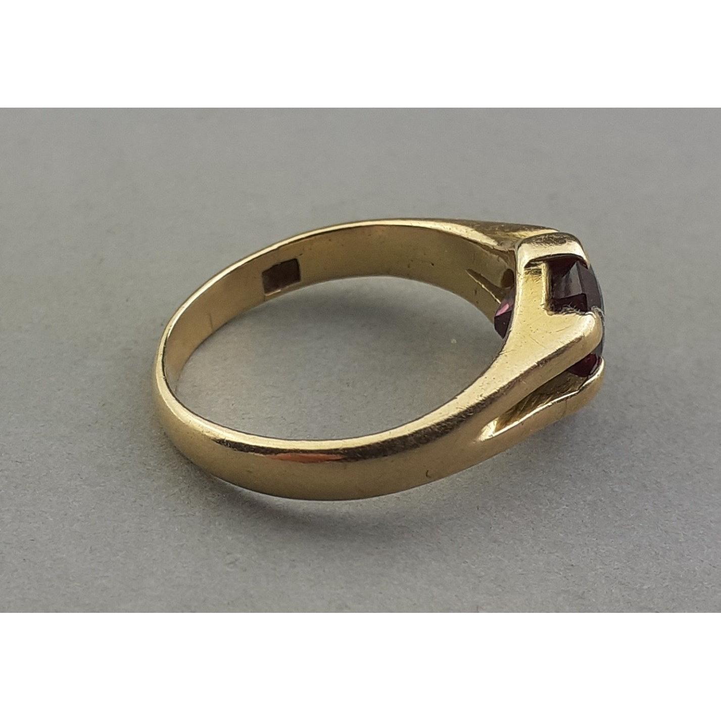 An unmarked yellow metal ring with lovely centre pale amethyst. Indistinct mark, Size M, gross weight 4.9g approx