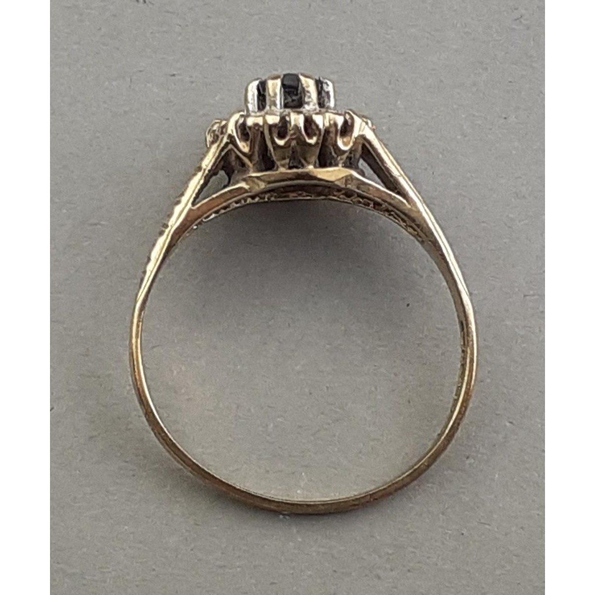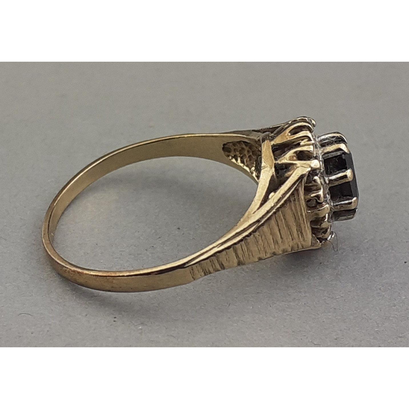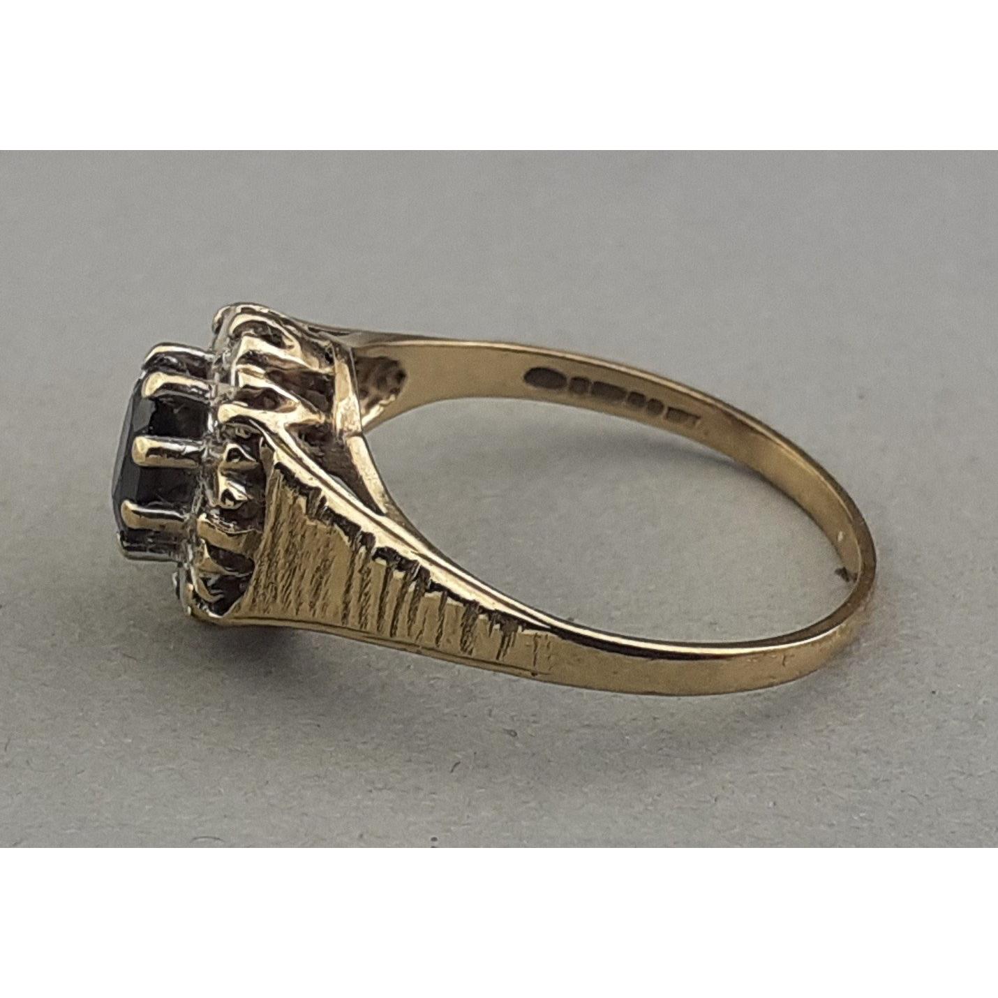 A 9ct hallmarked ring with deep blue central sapphire. Size N, gross weight 2.0g approx.