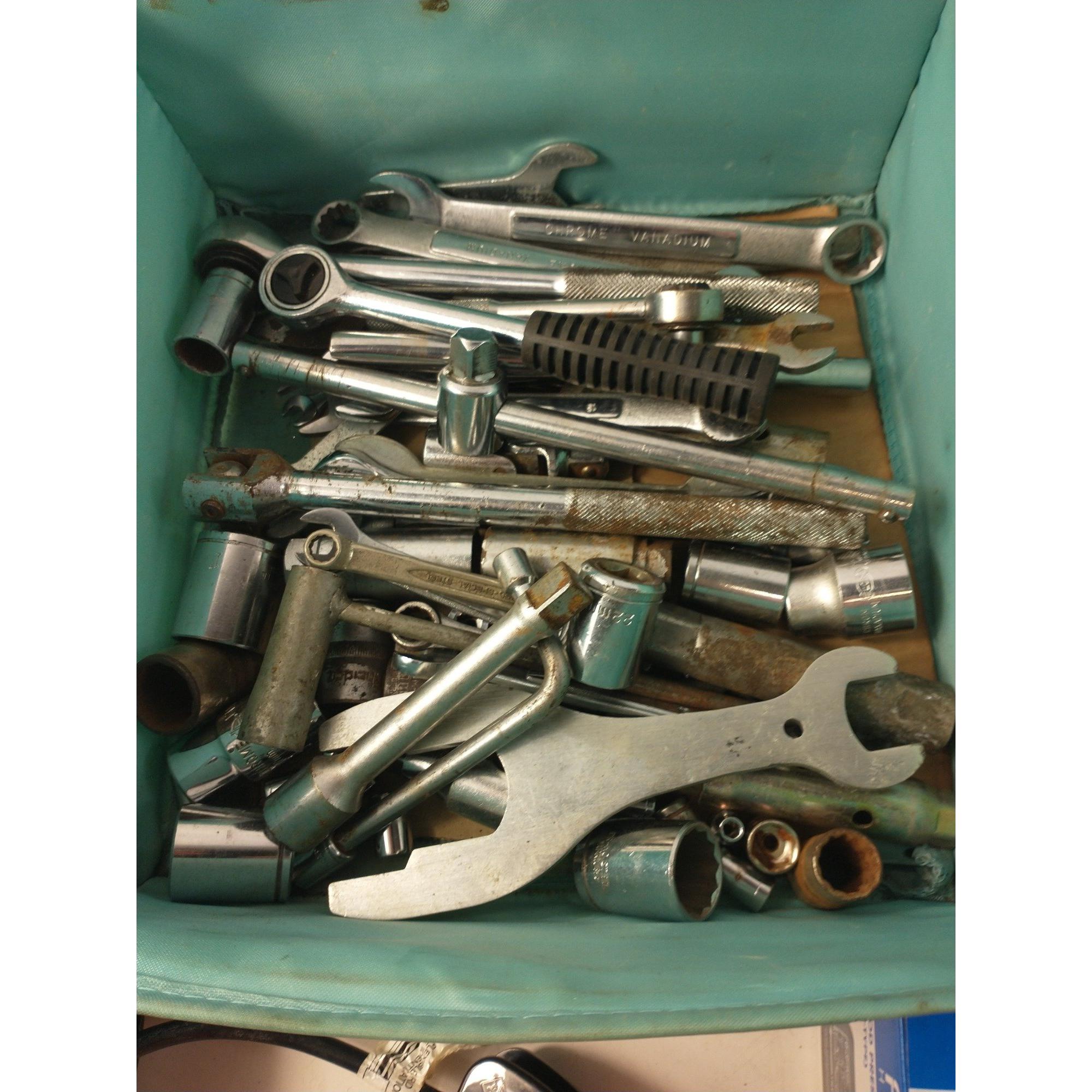 A useful tool lot to include BOSCH glue gun, ratchets etc, box of twin sockets with twin USBs, a 10m extension reel and a blood pressure monitor