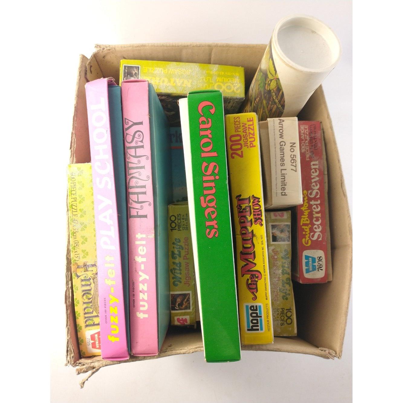 Two boxes of JIGSAWS, FUZZY FELT unchecked, some appear in poor condition.