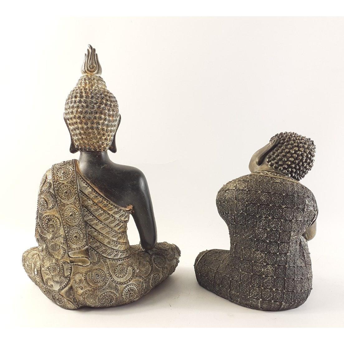 A pair of modern decorative resin THAI Buddha ornaments, the largest 34cm.