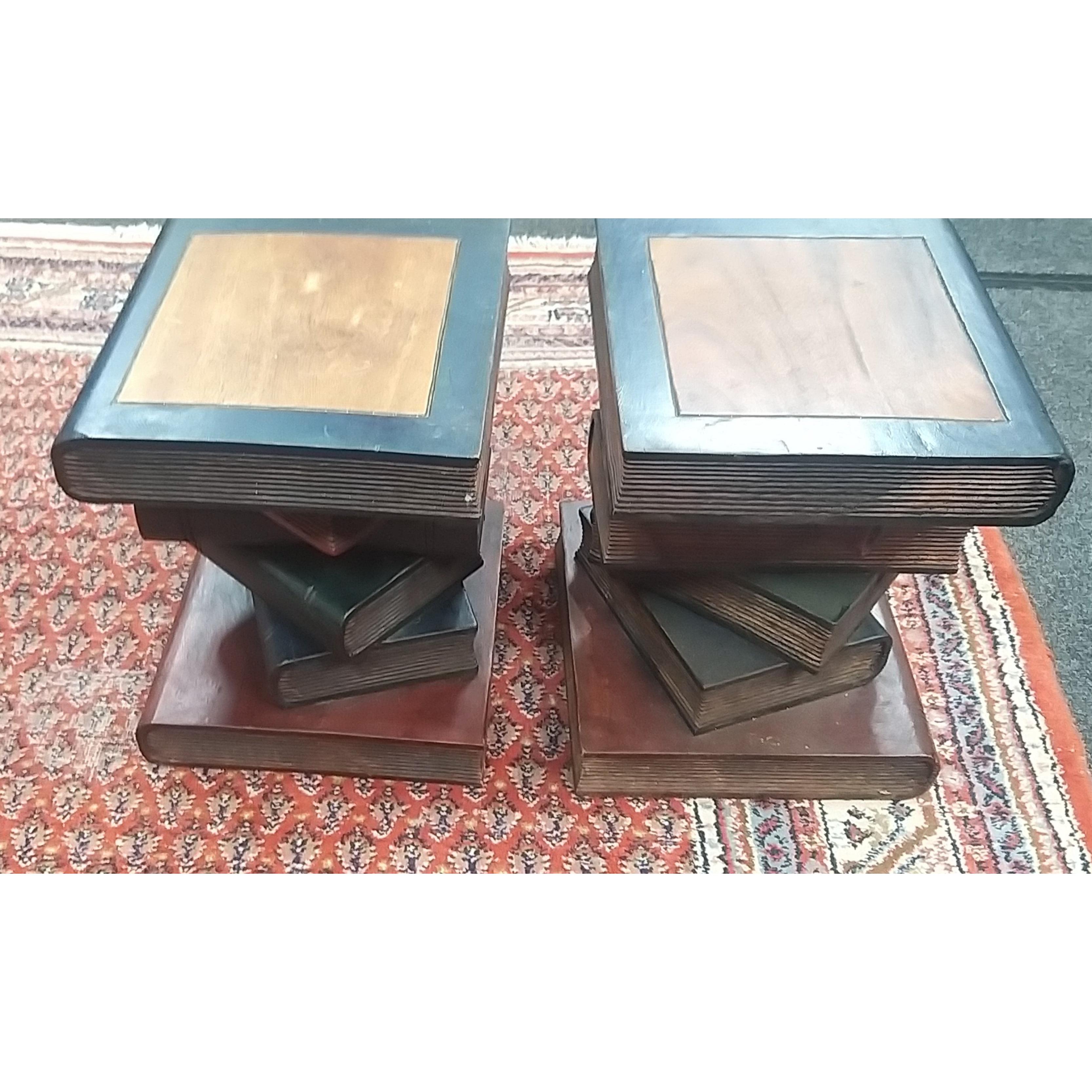 Pair of unusual side tables in the form of a stack of books, something you don't see everyday! W: 35cm D: 32cm H: 42cm approx at baseApprox 2 pieces