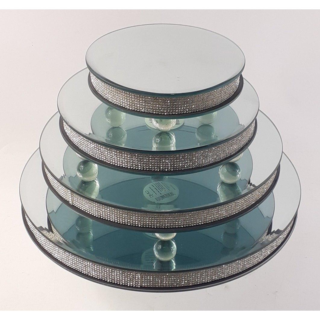 A super set of four wonderful cake display stands. Glass with diamante style edges.