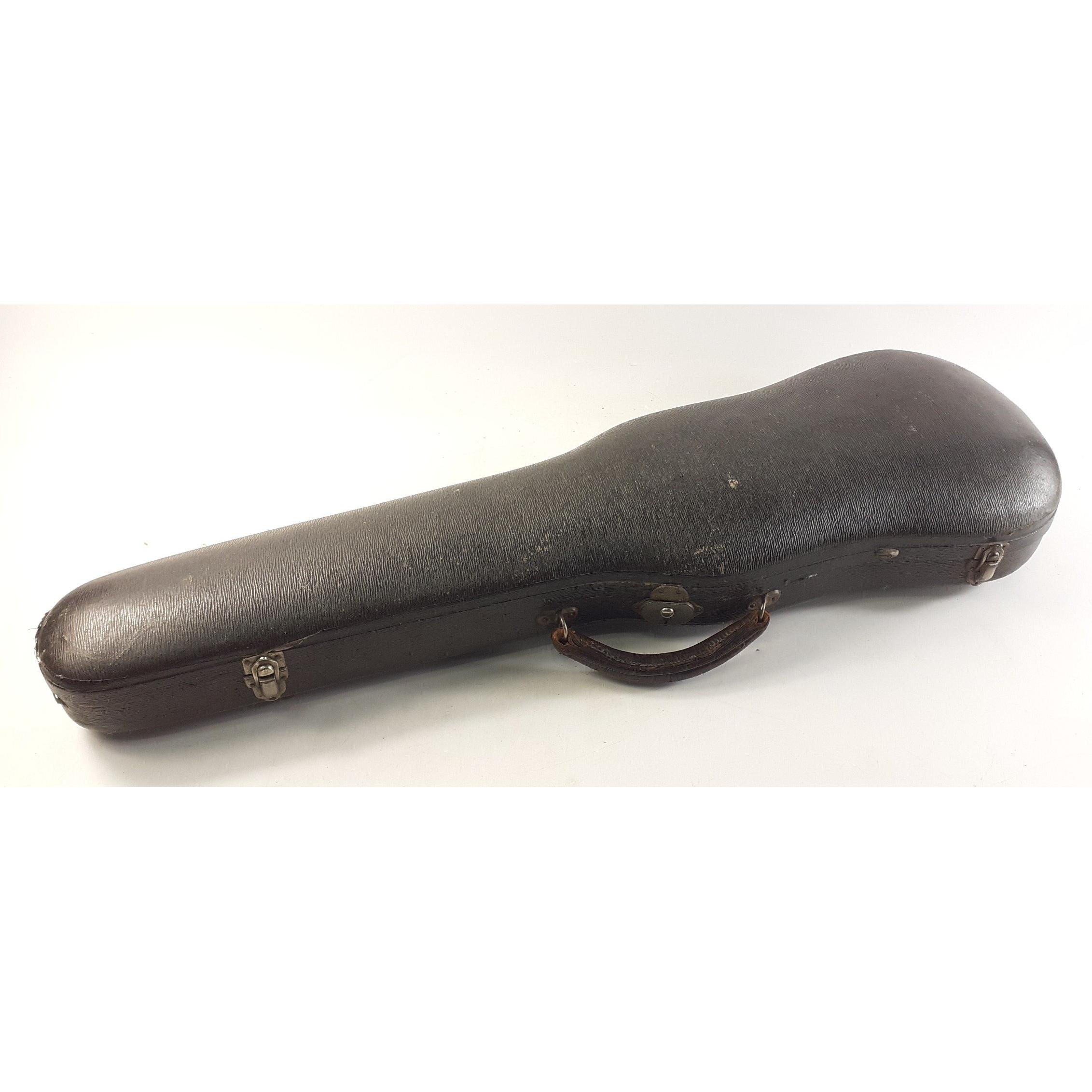 An antique violin case, 77cm approx. In good useable condition. Also an antique wooden money box.