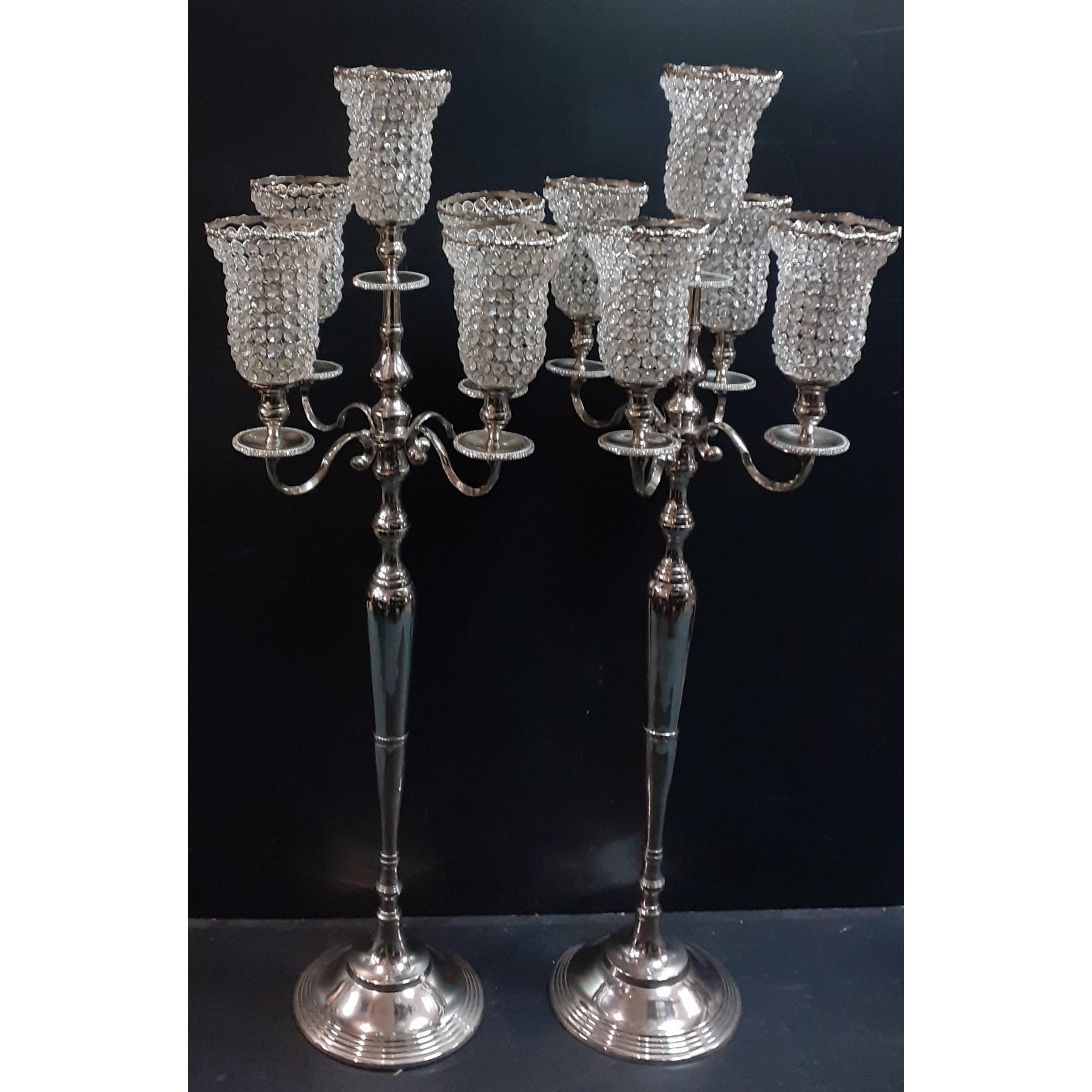 Two stunning chrome 4 branch candle holders each standing 120cm high approxApprox 2 pieces
