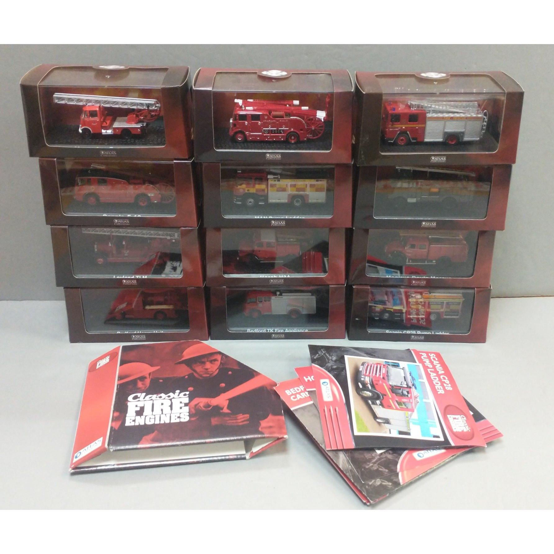 A collection of ATLAS EDITIONS Classic Fire Engines to include the Bedford TK Fire Appliance, Magirus-Deutz Mercur, Bedford Heavy Unit, Leyland TLM and others. Thirteen models in total.Approx 12 pieces